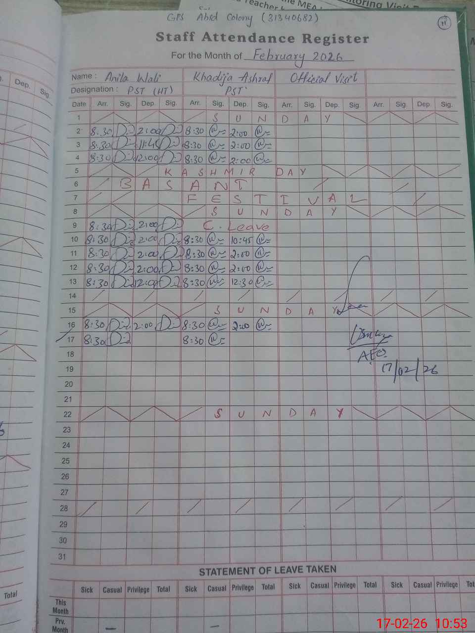 | EMIS Code: 31340682 | Name of School: GPS ABID COLONY | |||