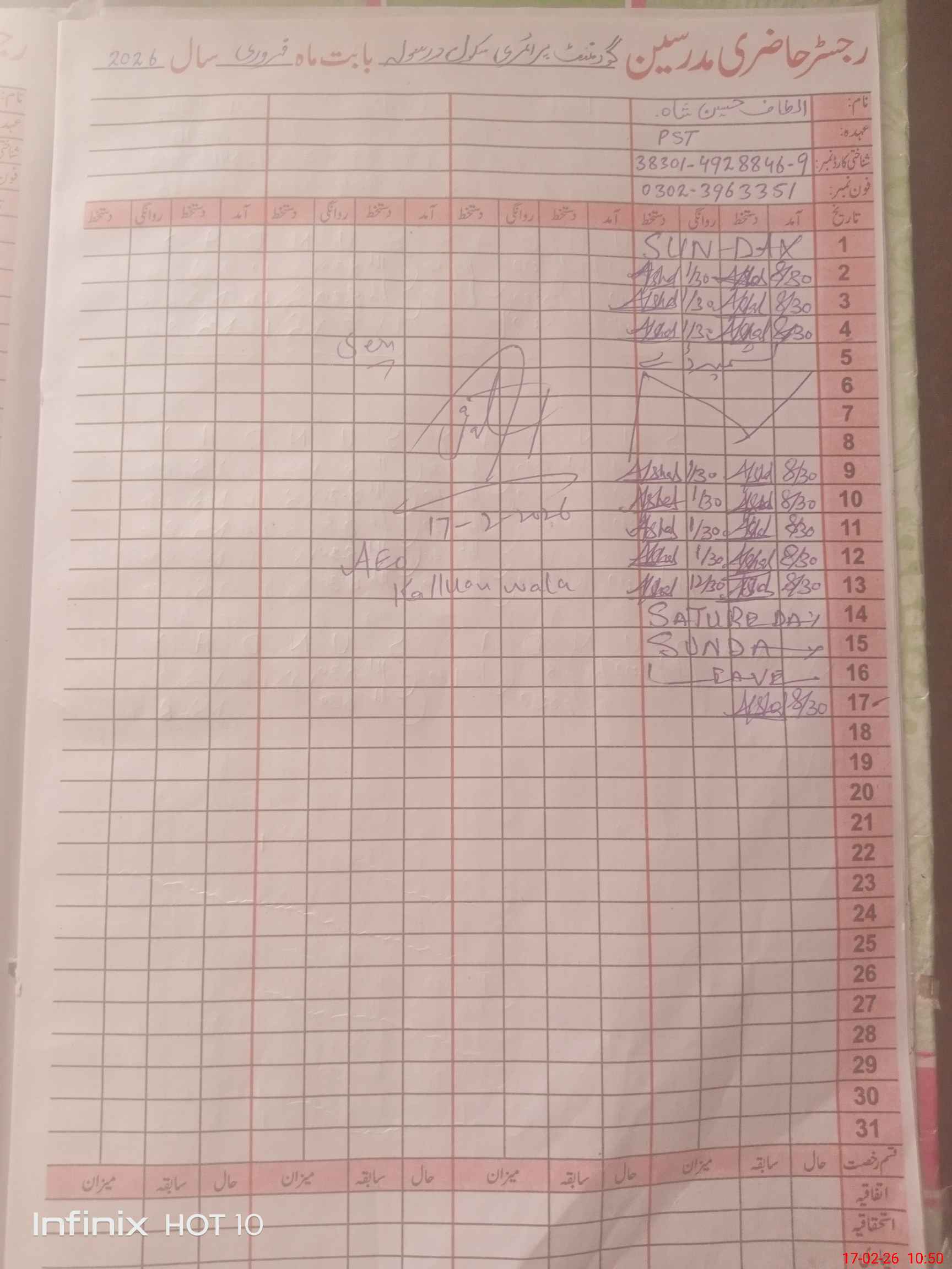 | Name: AB**** JA**** Designation: (School Headmaster's/Headmistress's) PST Phone/Cell Number: 03**** |