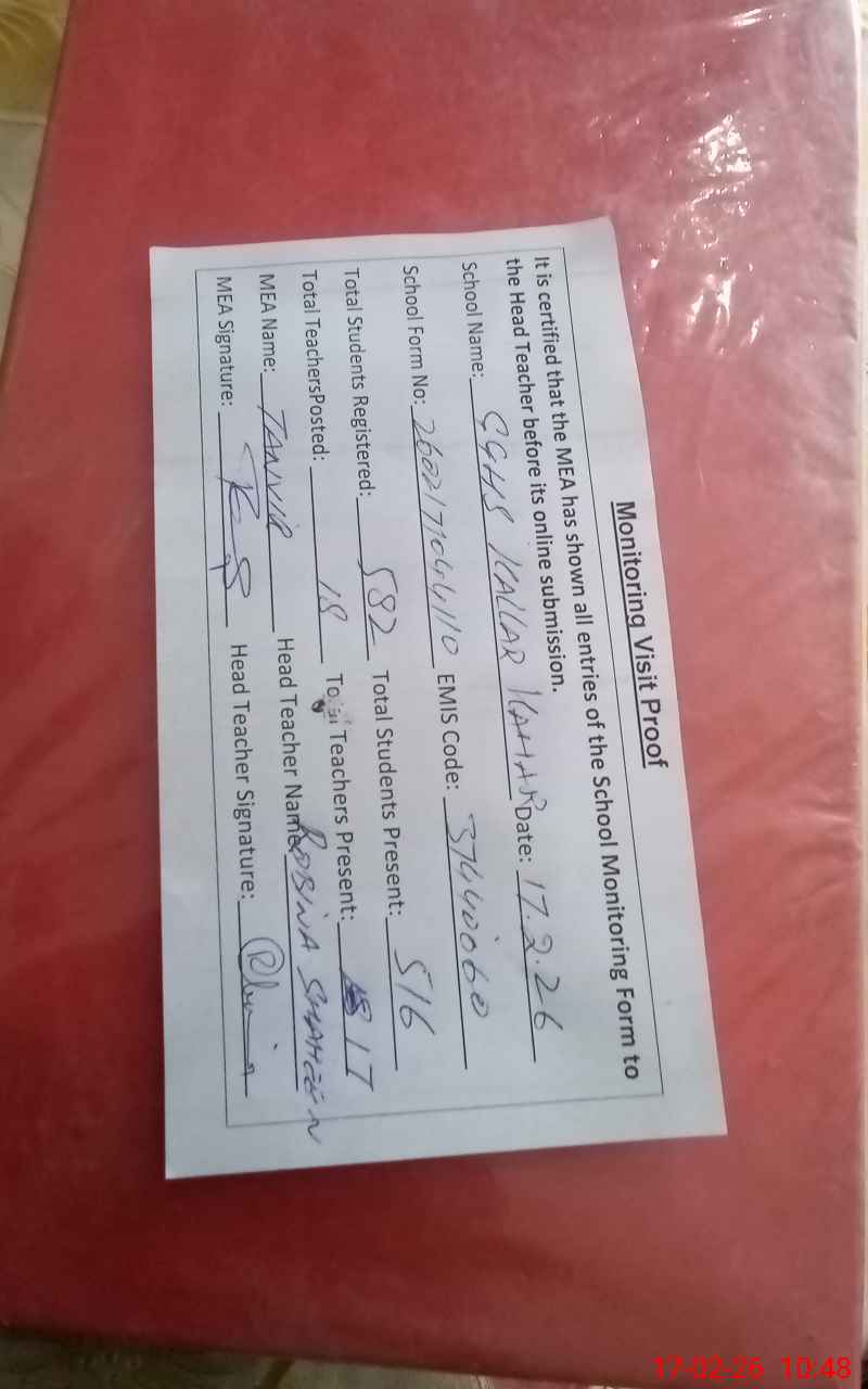 | EMIS Code: 37440060 | Name of School: GGHS KALLAR KAHAR | |||