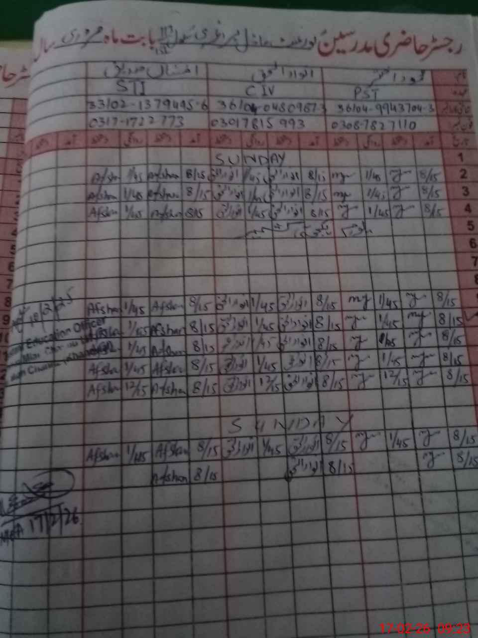 | Name: Me**** Ak**** Designation: (School Headmaster's/Headmistress's) PST Phone/Cell Number: 03**** |