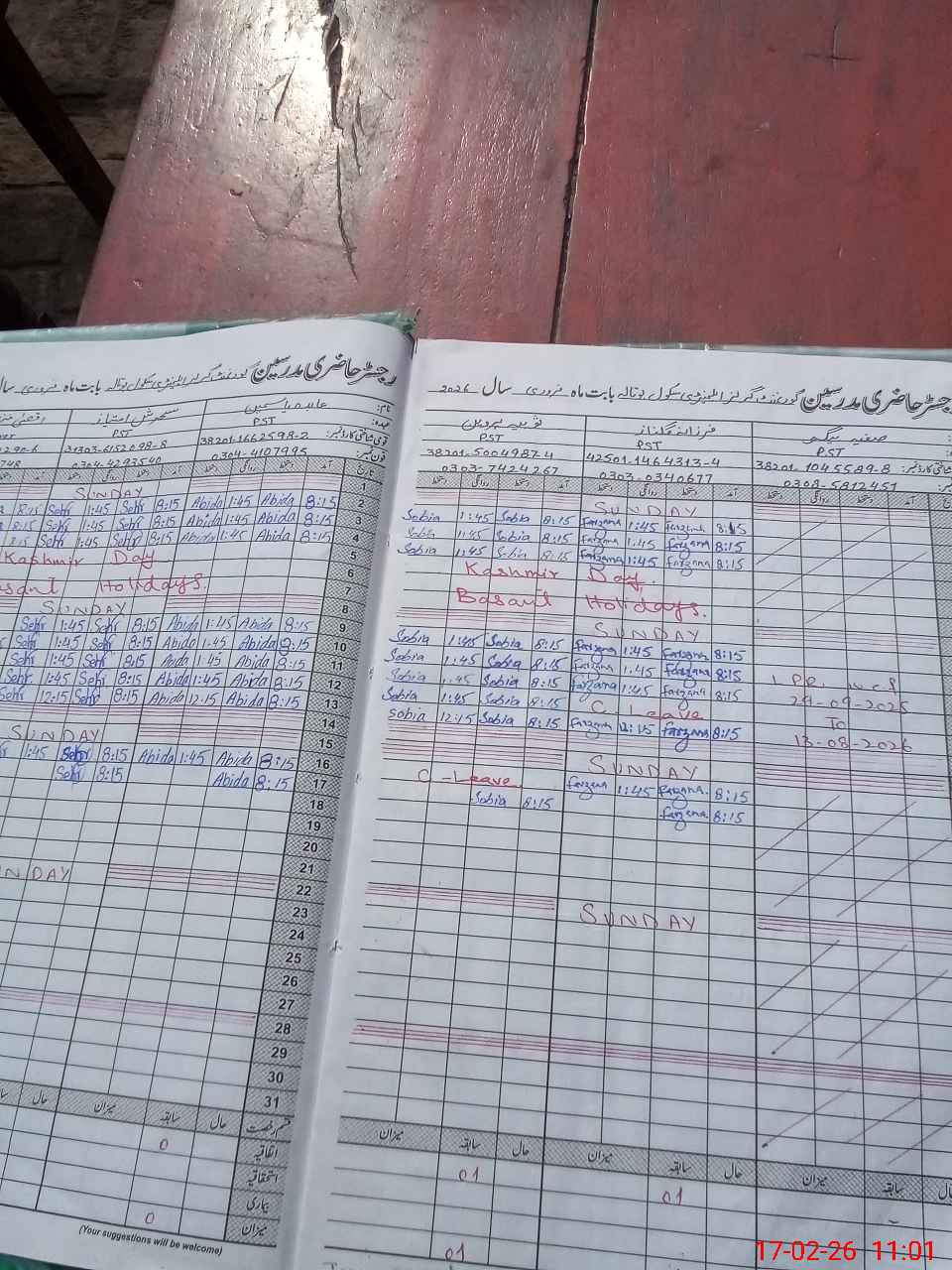 | CNIC | Full Name | Designation | R/C | Absence During Last Calender Month |