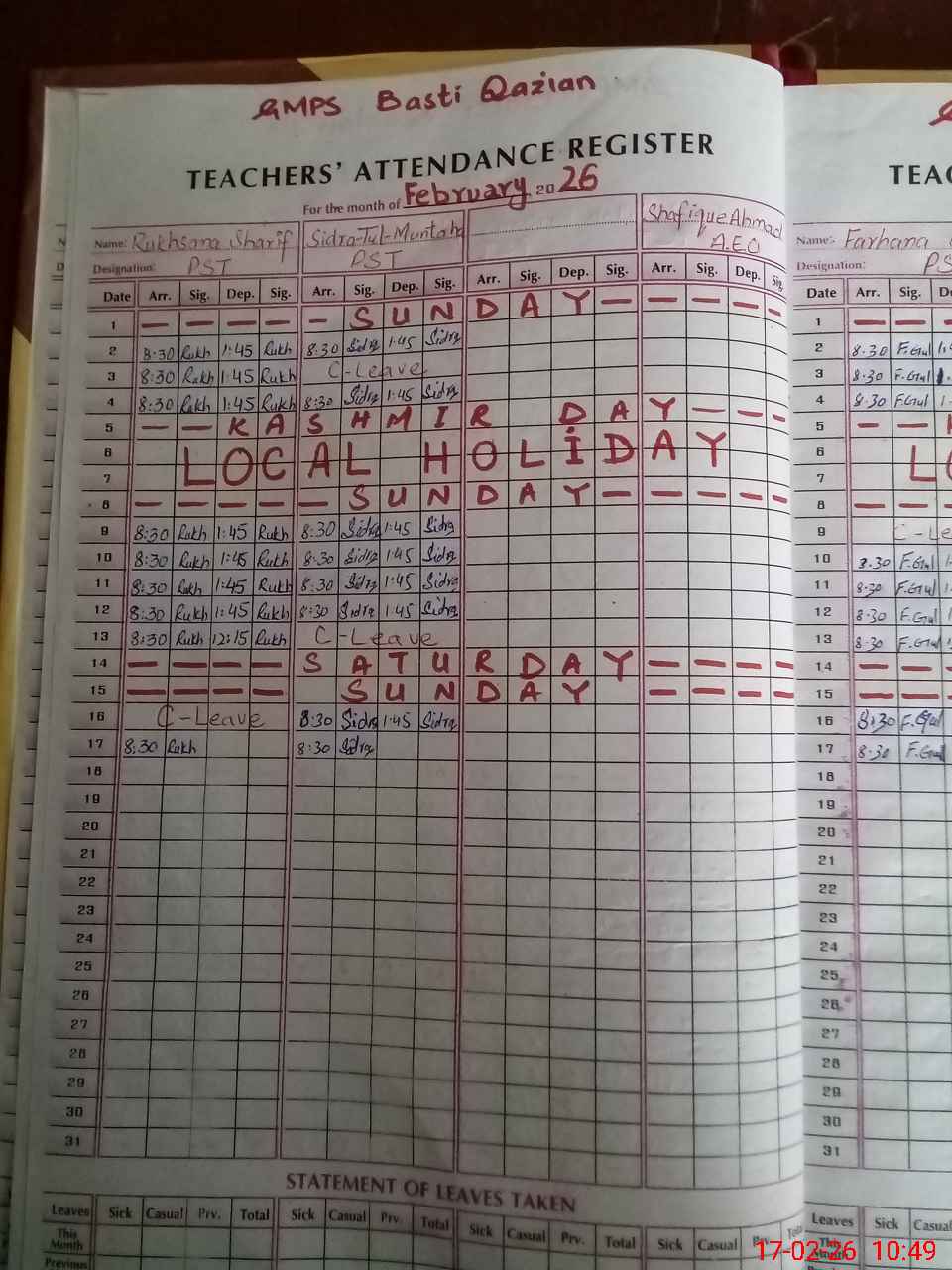 | Leave | Duty | Absent | Maternity | Medical | Ex- Pak |