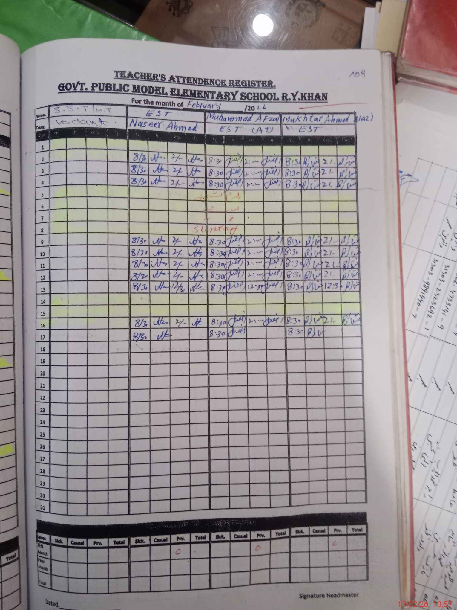 | CNIC | Full Name | Designation | R/C | Absence During Last Calender Month |