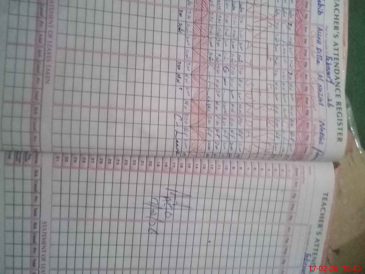 | Leave | Duty | Absent | Maternity | Medical | Ex- Pak |
