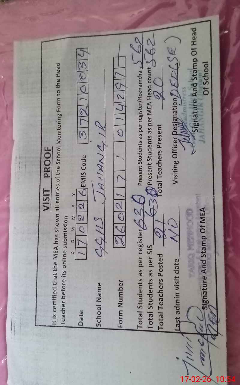 | EMIS Code: 37210034 | Name of School: GGHS JAHANGIR | |||