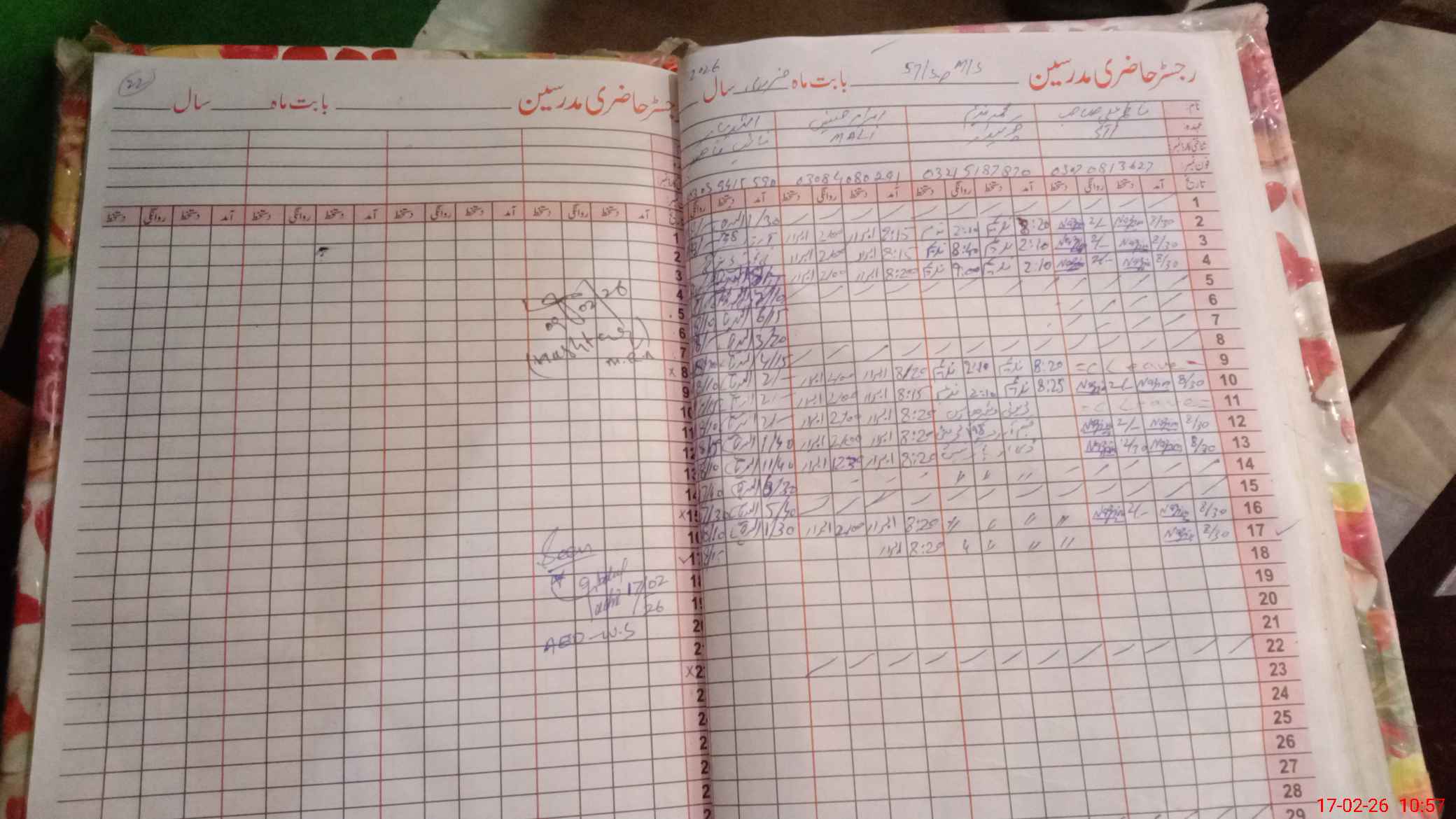 | CNIC | Full Name | Designation | R/C | Absence During Last Calender Month |
