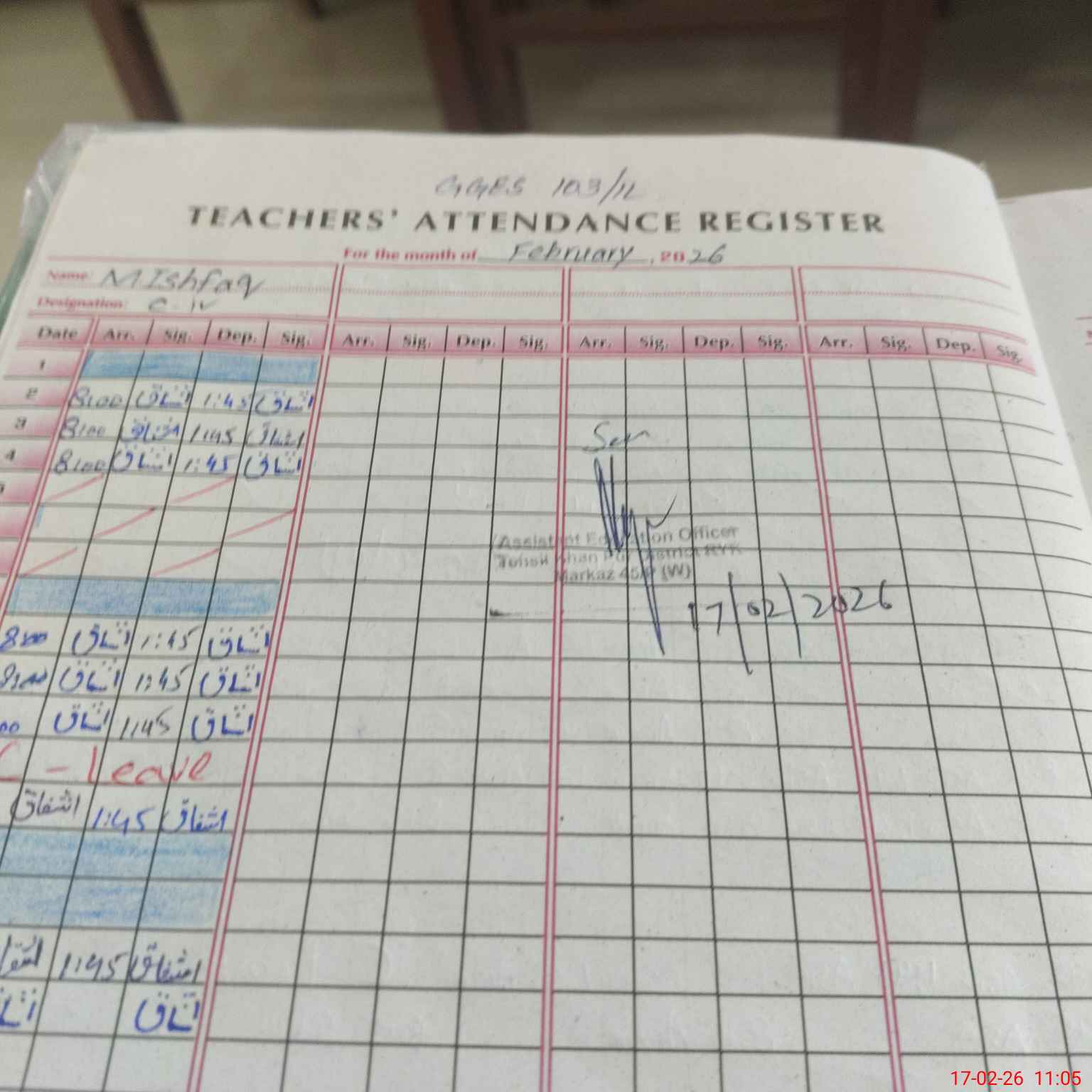 | CNIC | Full Name | Designation | R/C | Absence During Last Calender Month |