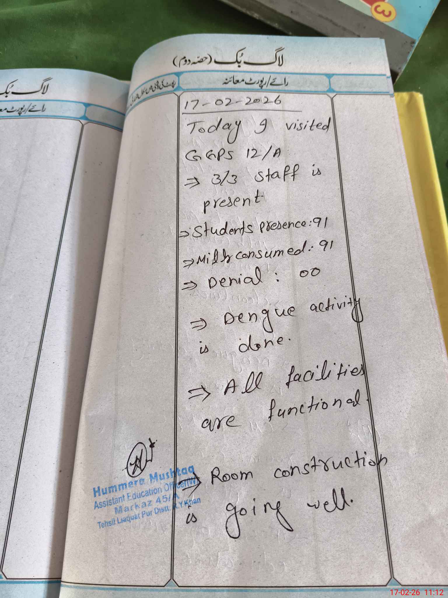 | Certified that this School was Inspected by the Undersigned MEA/DMO Today and the Information Stated Above is as Per Record. | |||||
