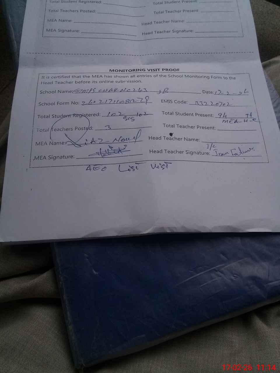 | EMIS Code: 33220702 | Name of School: GMPS CHAK NO 263 JB | |||