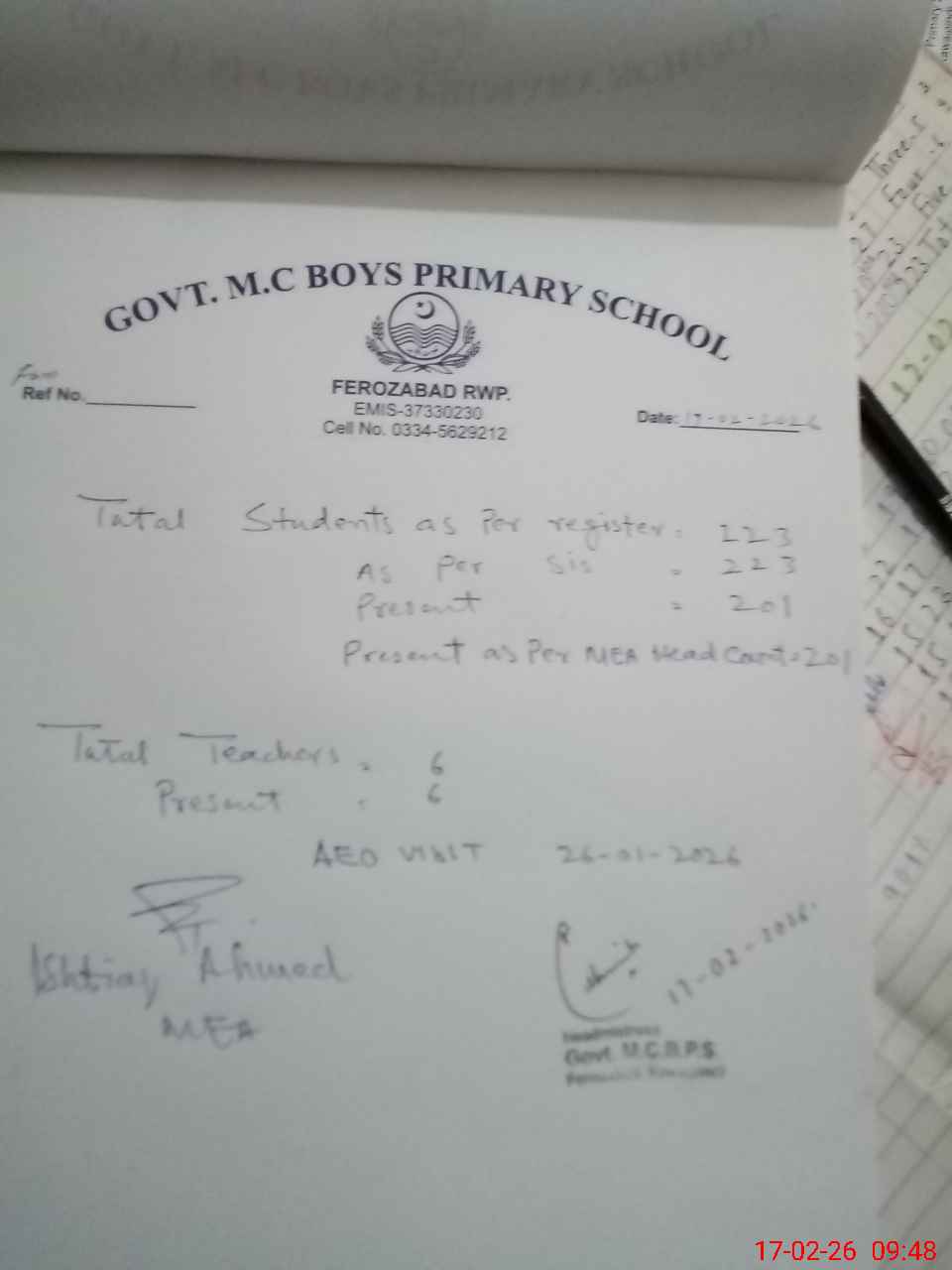 | EMIS Code: 37330230 | Name of School: GPS MC FEROZABAD | |||