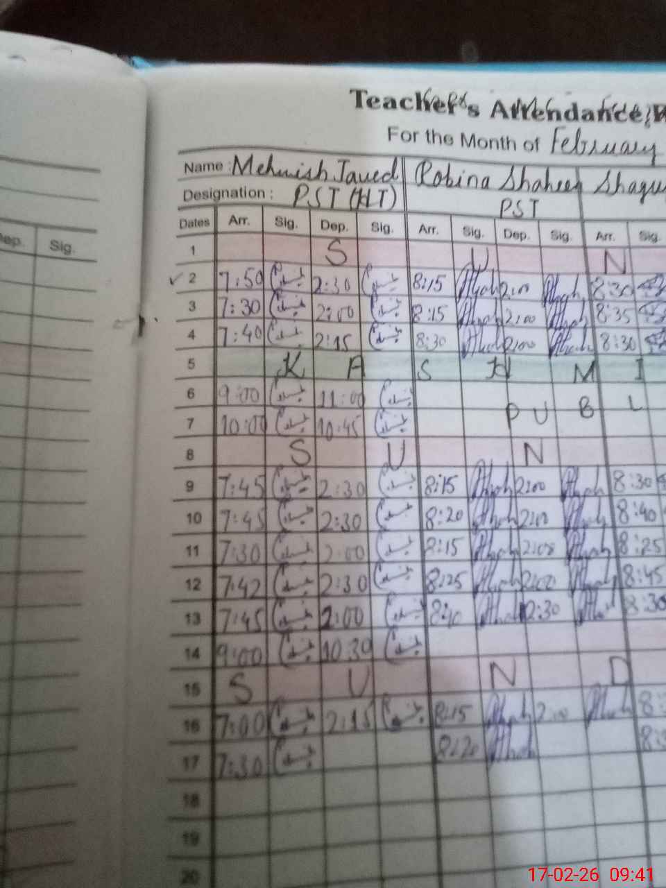 | CNIC | Full Name | Designation | R/C | Absence During Last Calender Month |