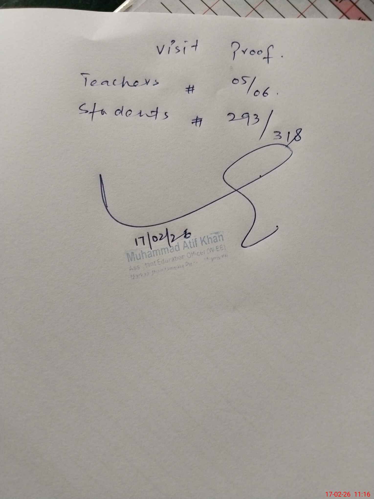 | Attendance Register | Head Teacher | MEA with School | Visit Proof |
