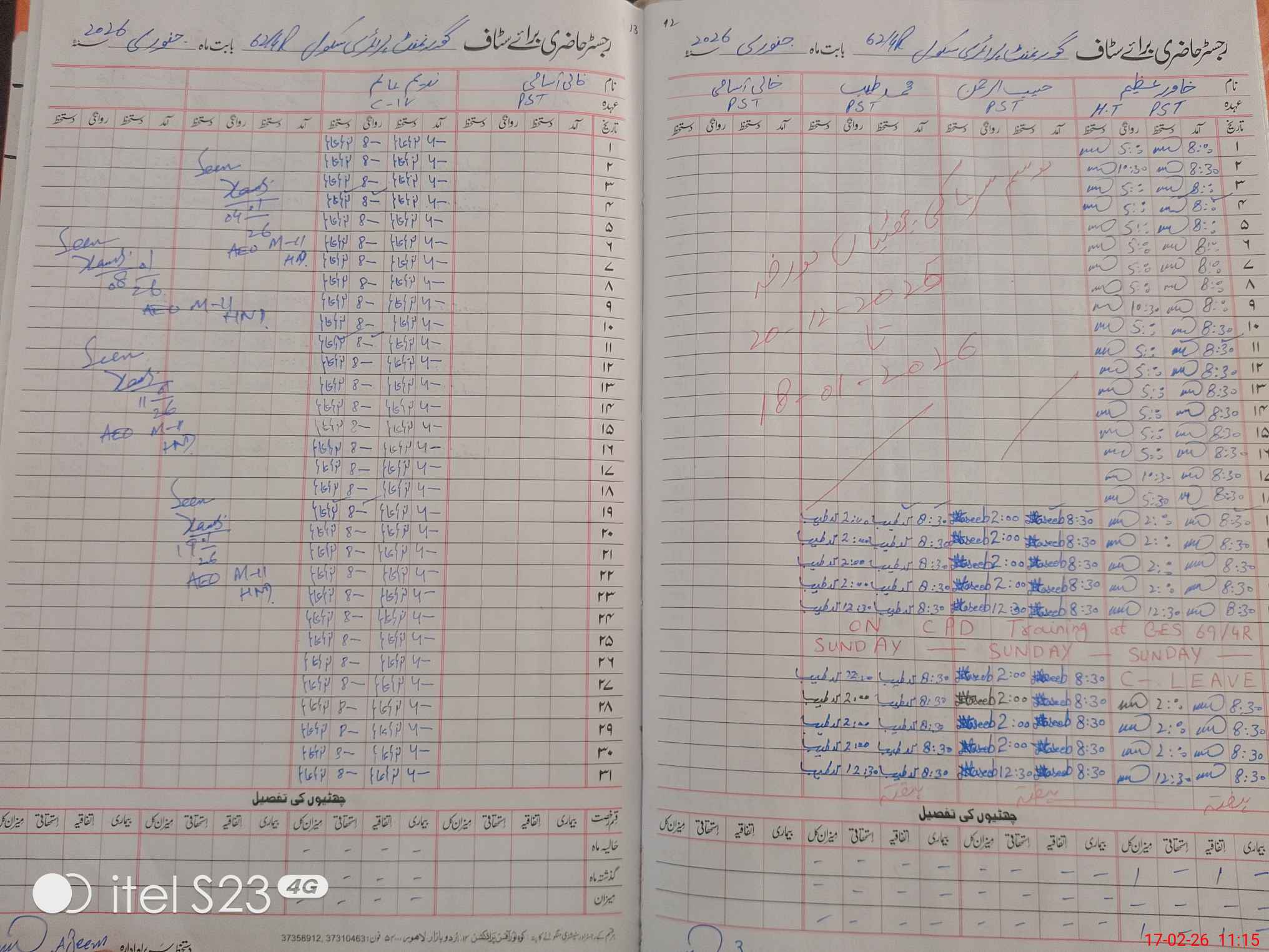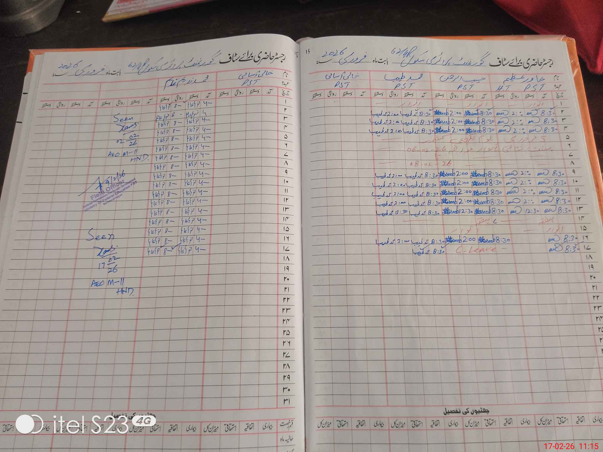 | Name: KH**** AZ**** Designation: (School Headmaster's/Headmistress's) PST Phone/Cell Number: 03**** |