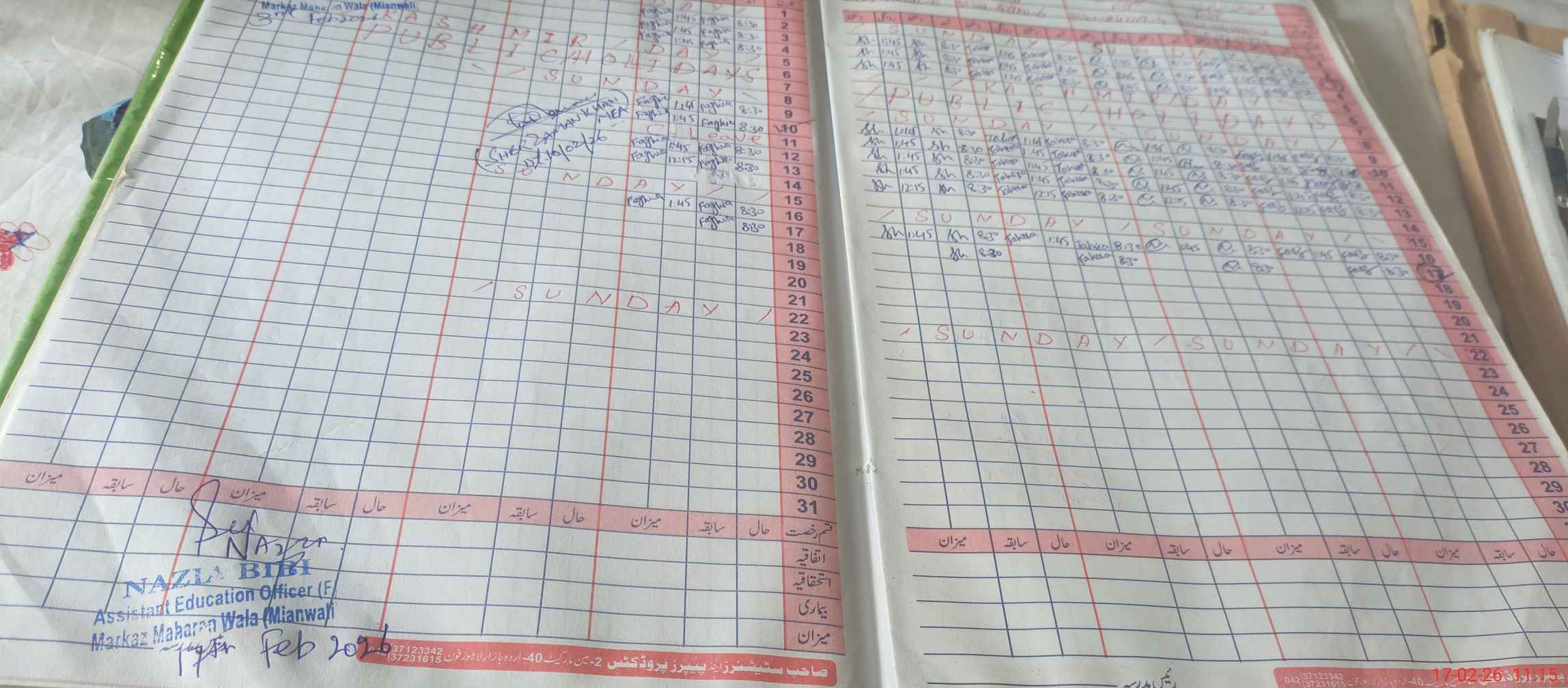 | CNIC | Full Name | Designation | R/C | Absence During Last Calender Month |