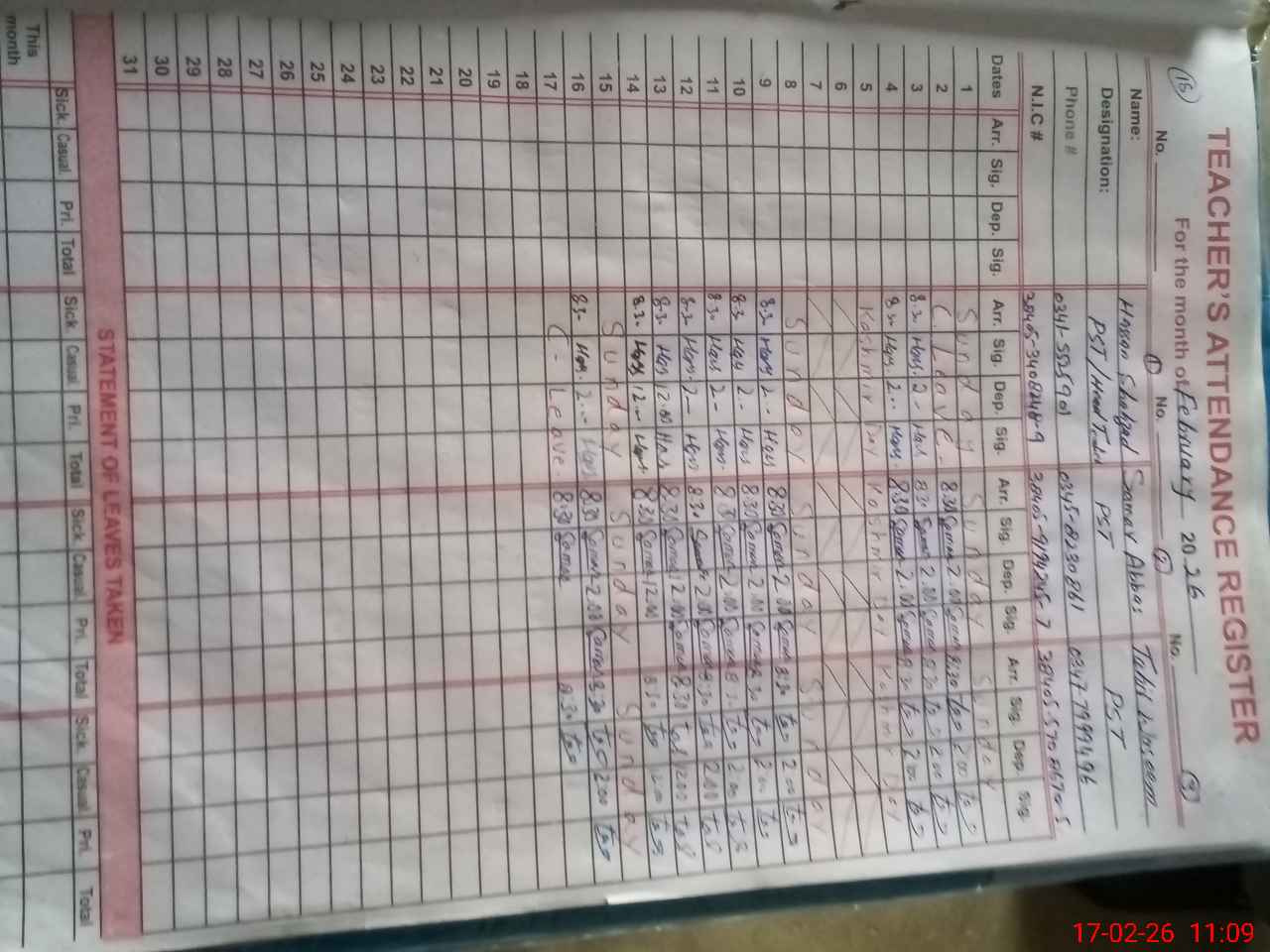 | Name: Ha**** Sh**** Am**** Designation: (School Headmaster's/Headmistress's) PST SCI Phone/Cell Number: 03**** |