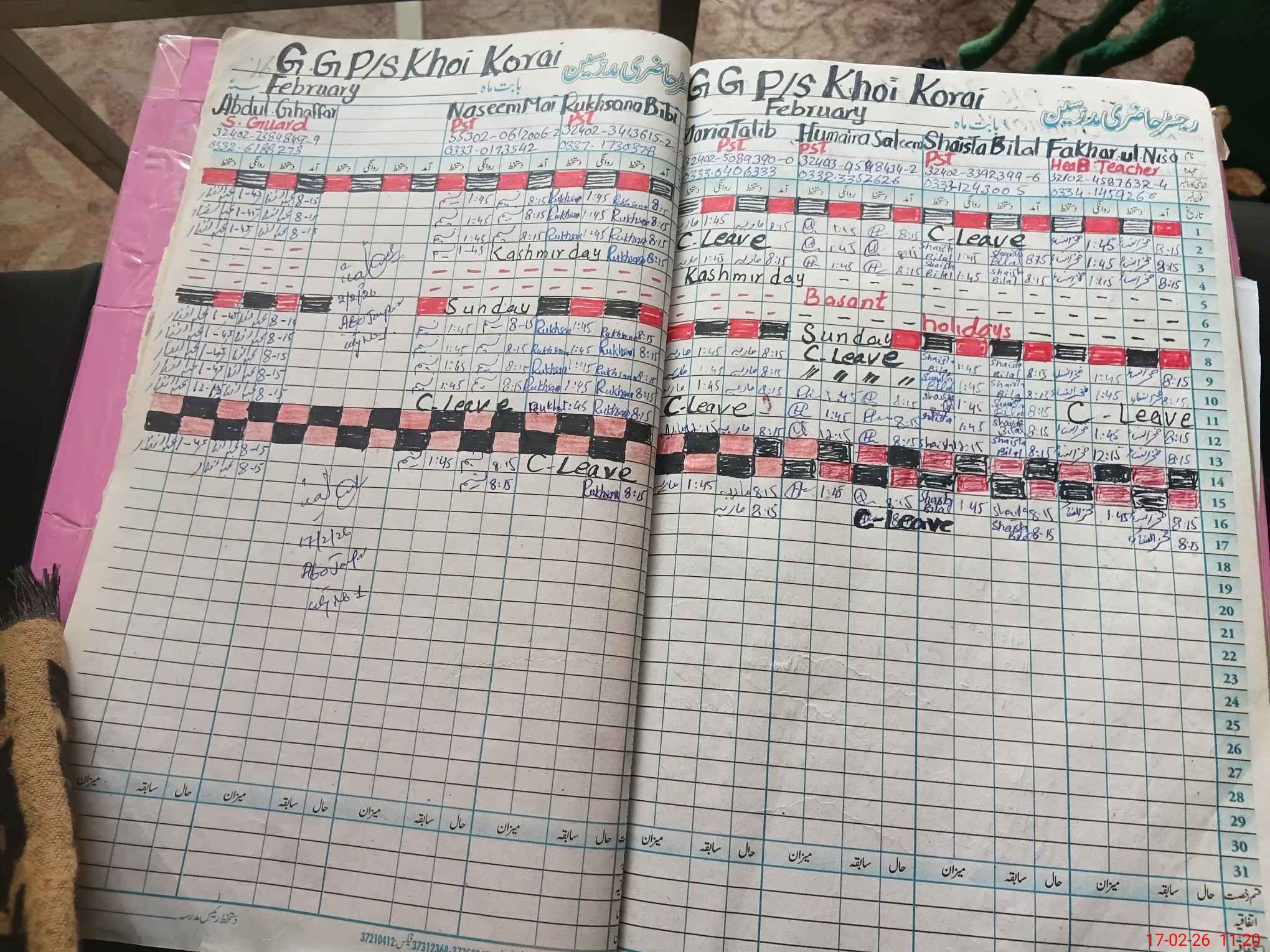 | CNIC | Full Name | Designation | R/C | Absence During Last Calender Month |