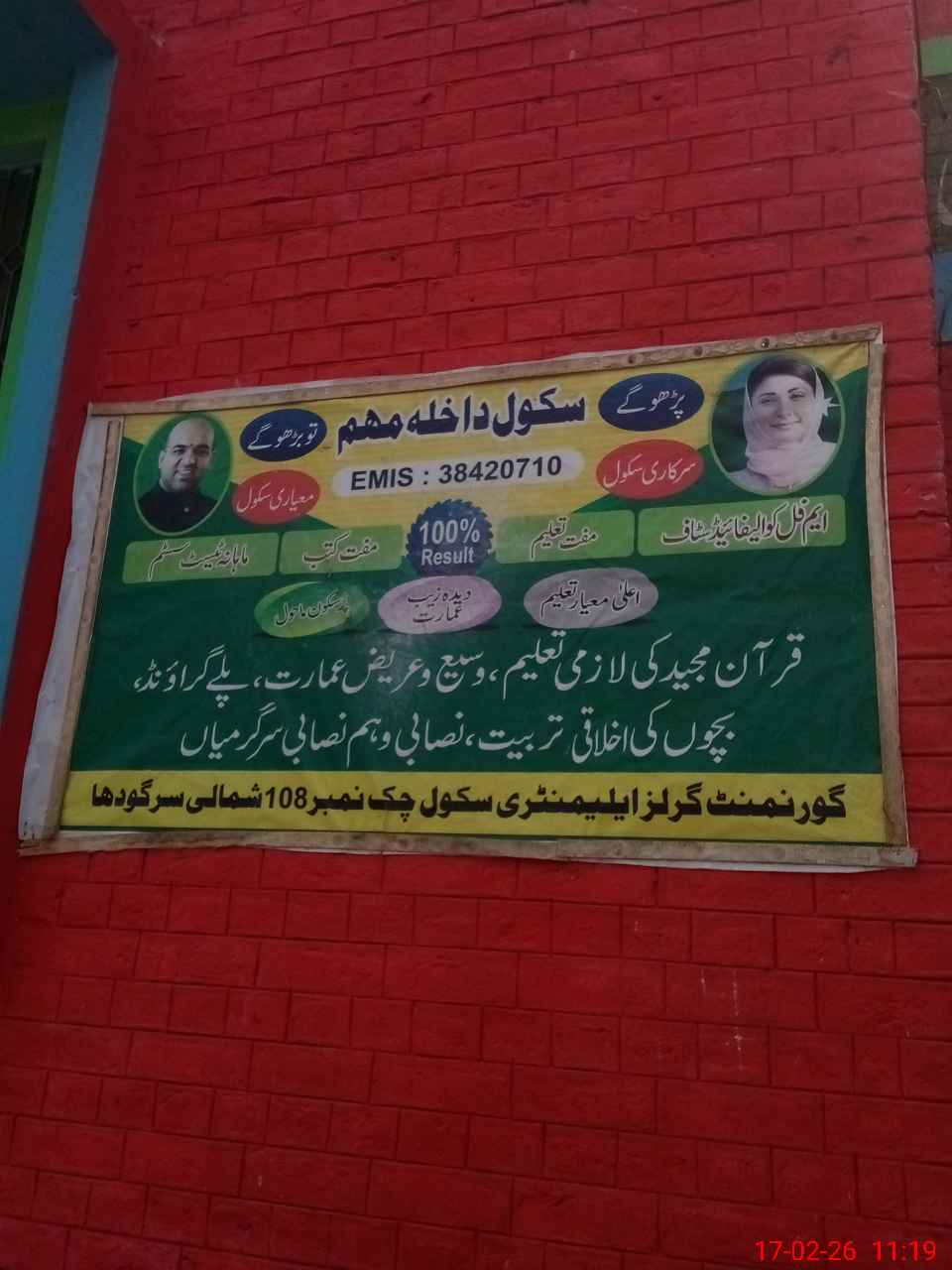 | EMIS Code: 38420710 | Name of School: GGES CHAK NO.108 NB | |||