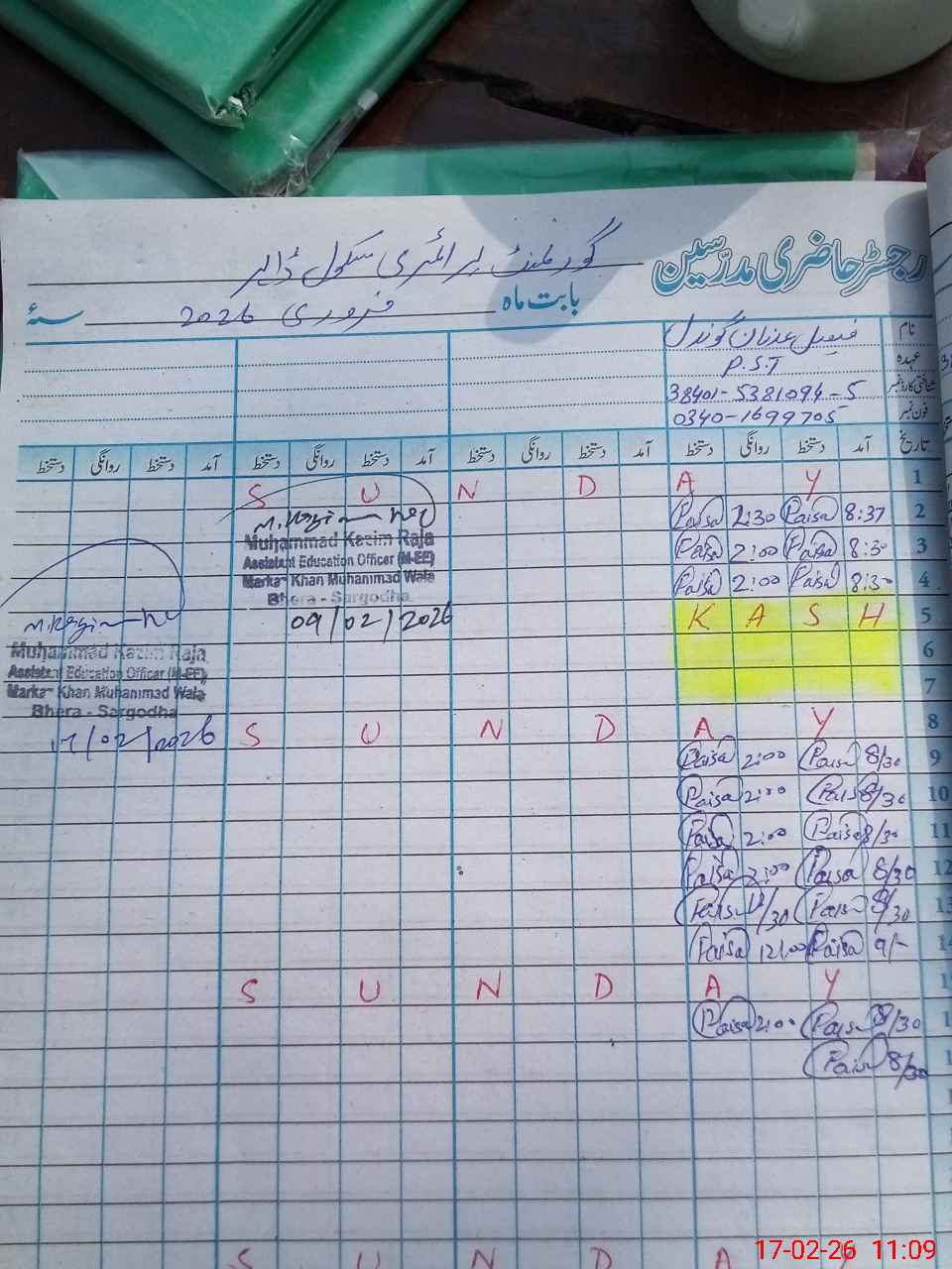 | Name: Mu**** Fa**** Designation: (School Headmaster's/Headmistress's) PST Phone/Cell Number: 03**** |