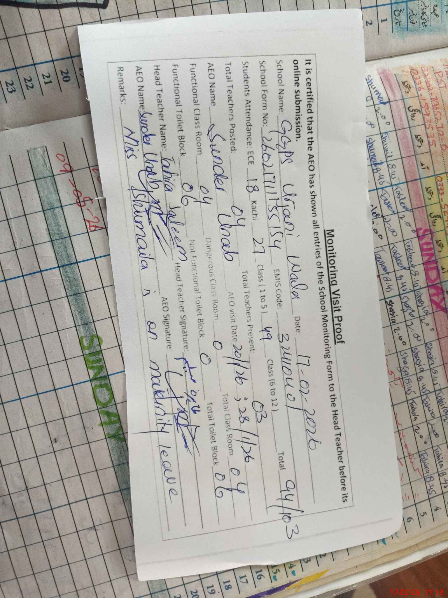| EMIS Code: 32410401 | Name of School: GGPS URJANI WALA | |||