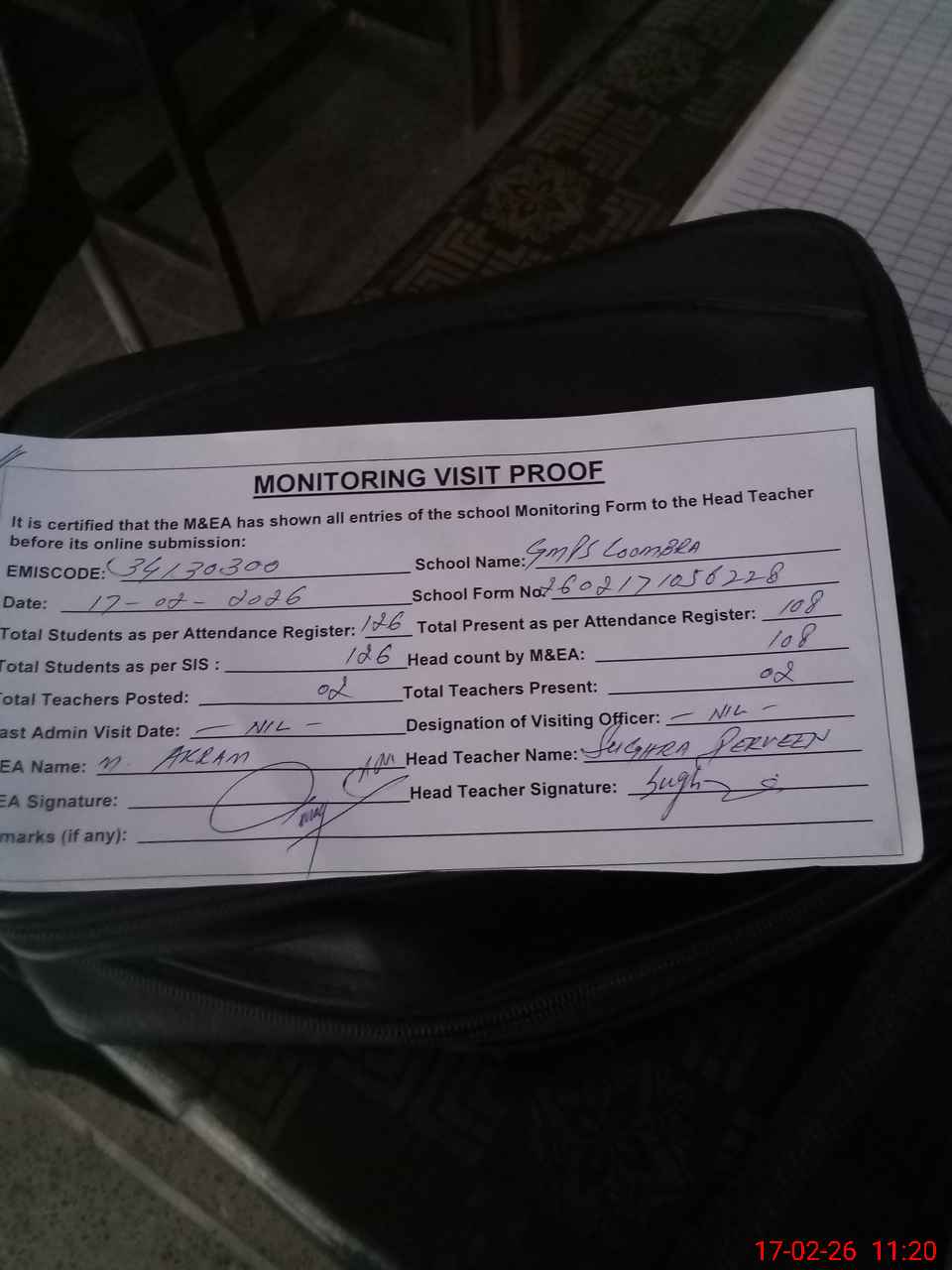 | EMIS Code: 34130300 | Name of School: GMPS LOOMBRA | |||