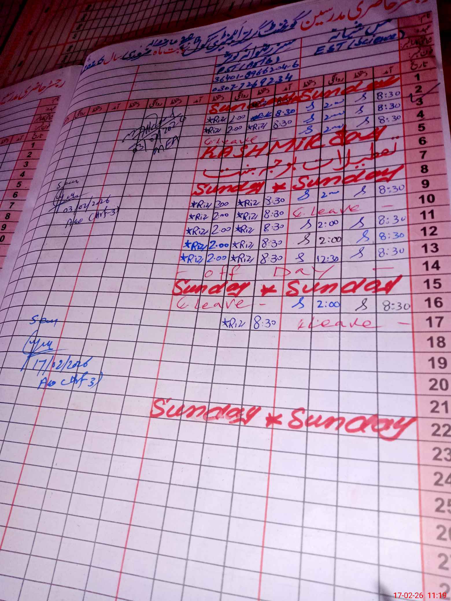 | Name: Sh**** Kh**** Designation: (School Headmaster's/Headmistress's) EST Phone/Cell Number: 03**** |