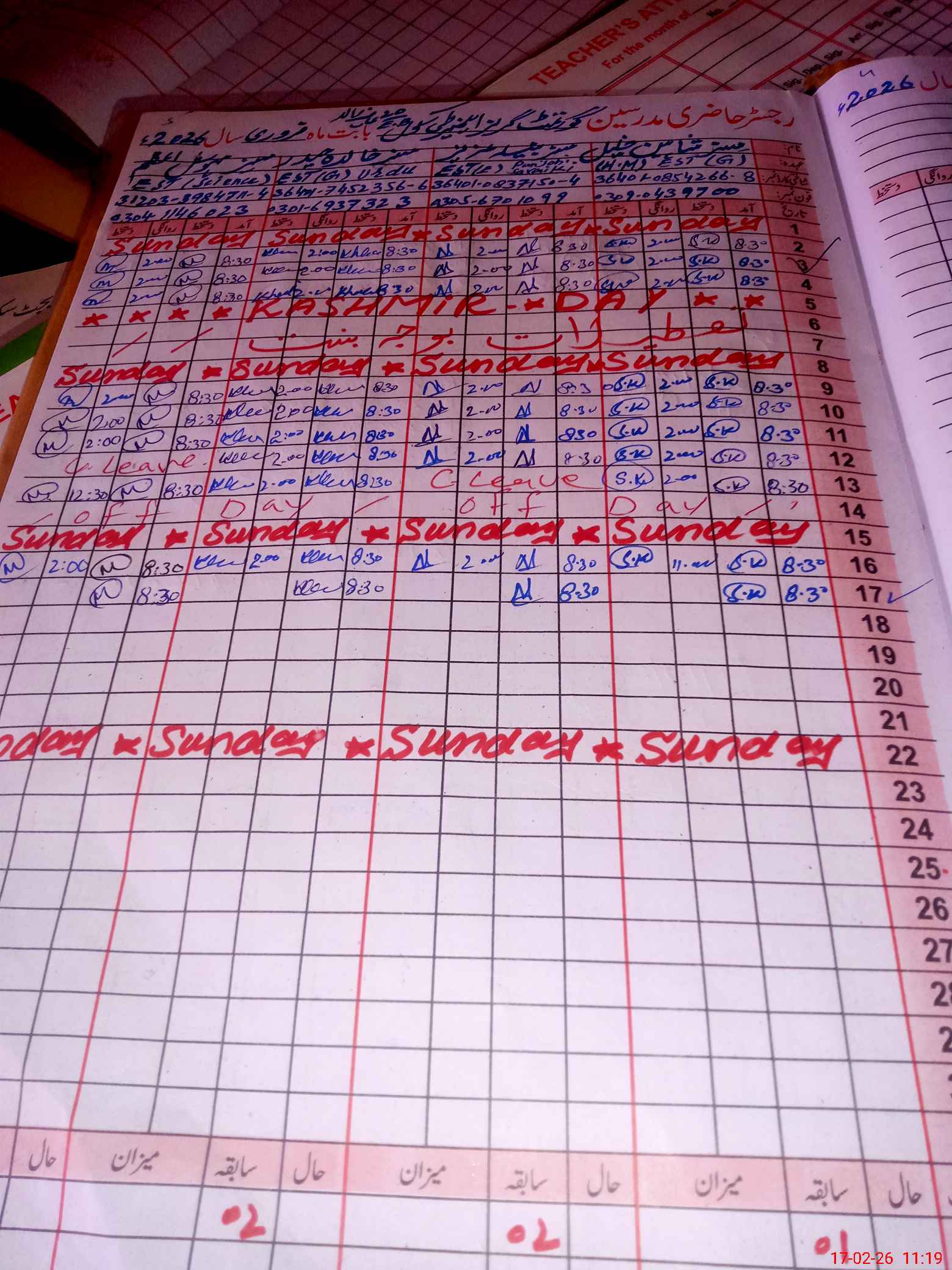 | CNIC | Full Name | Designation | R/C | Absence During Last Calender Month |