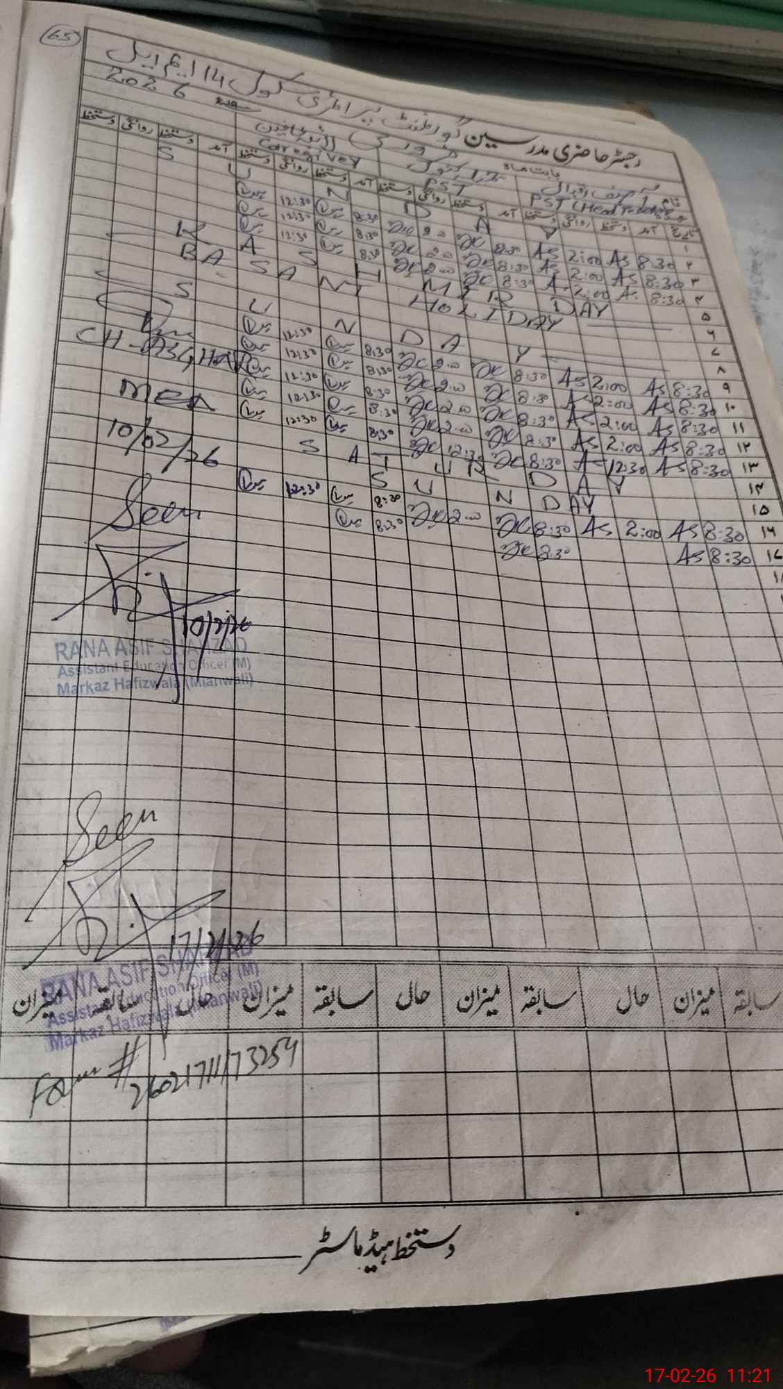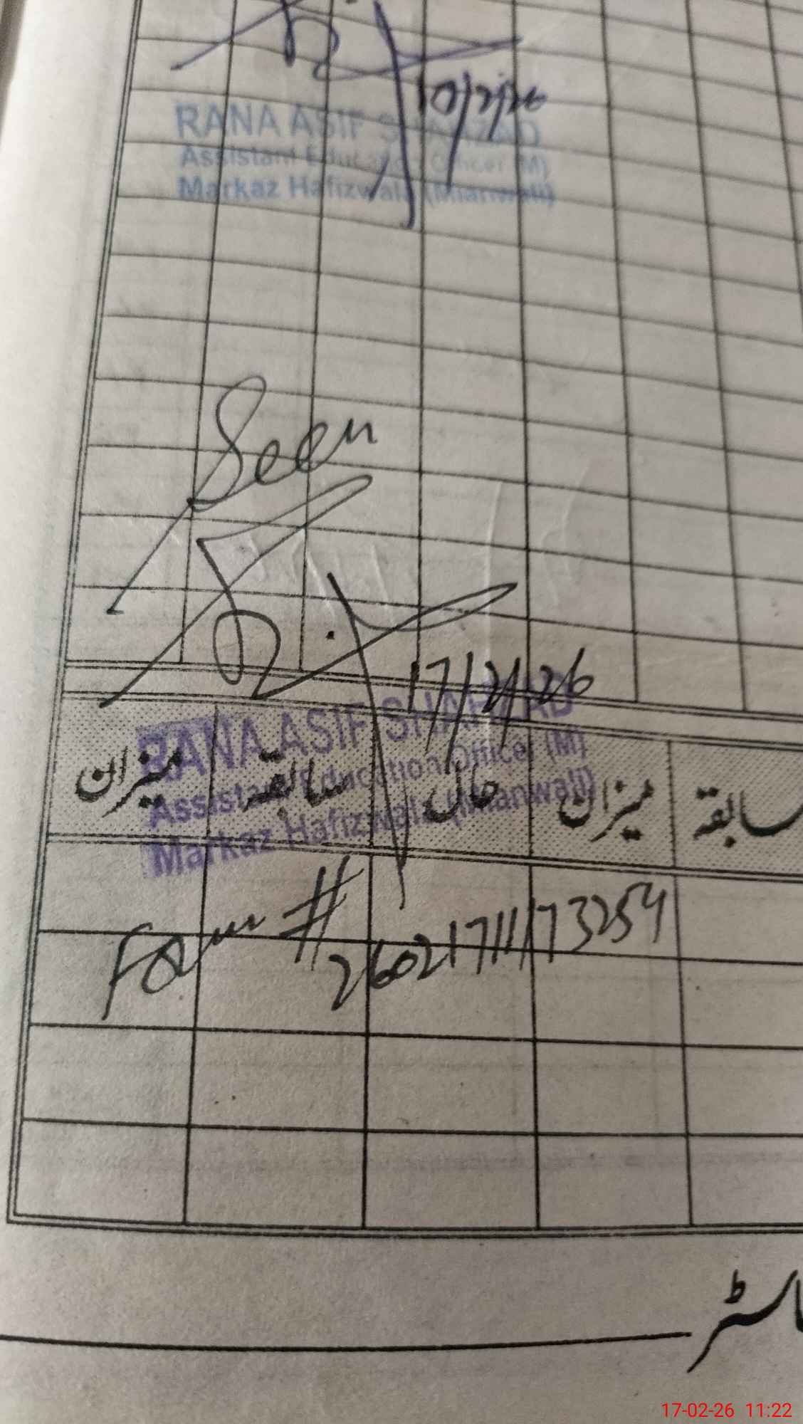 | Name: AS**** IQ**** Designation: (School Headmaster's/Headmistress's) PST Phone/Cell Number: 03**** |
