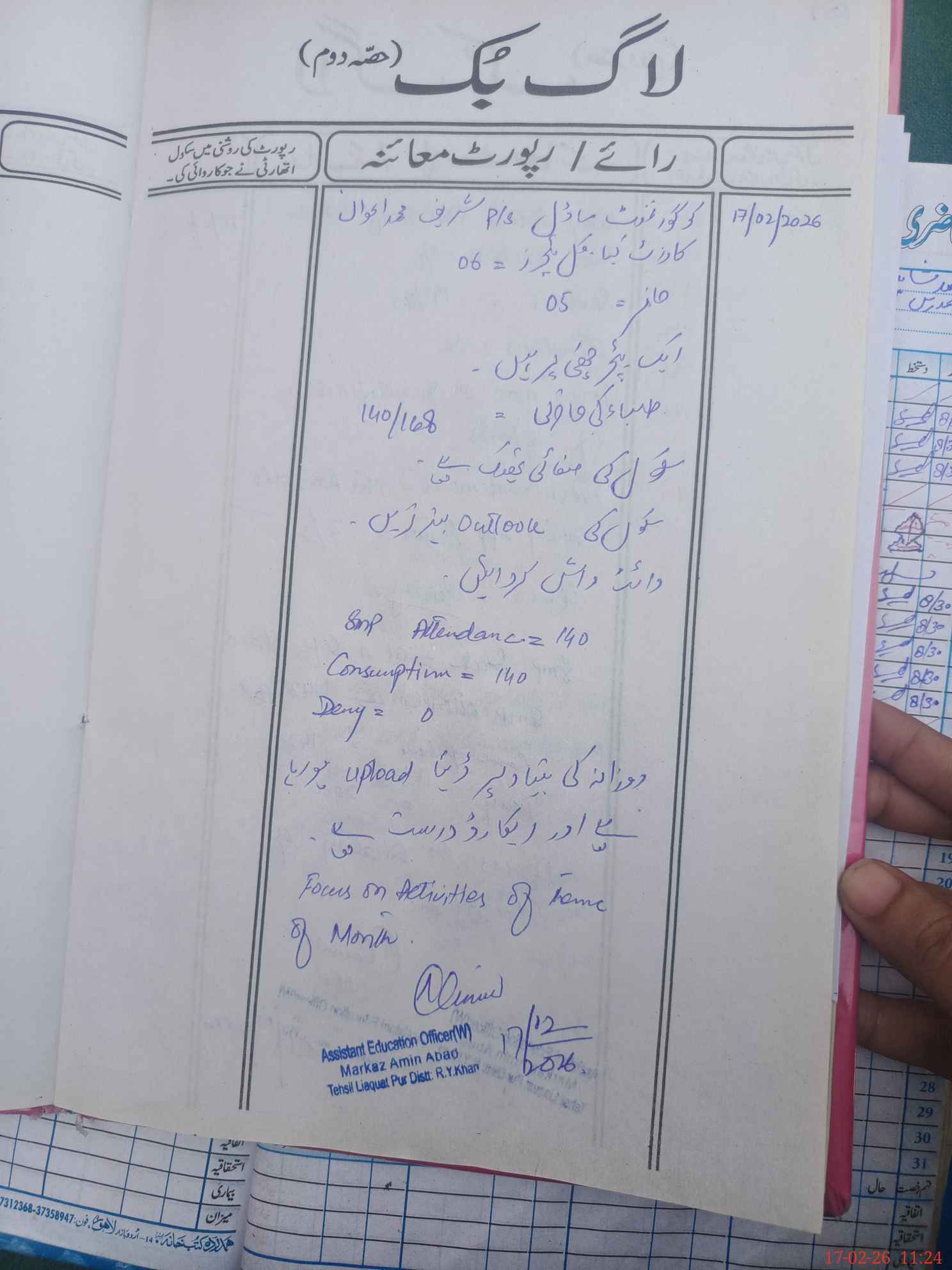 | District: RAHIMYAR KHAN | Tehsil: LIAQATPUR | Markaz: AMIN ABAD - FEMALE | Level: Primary | |