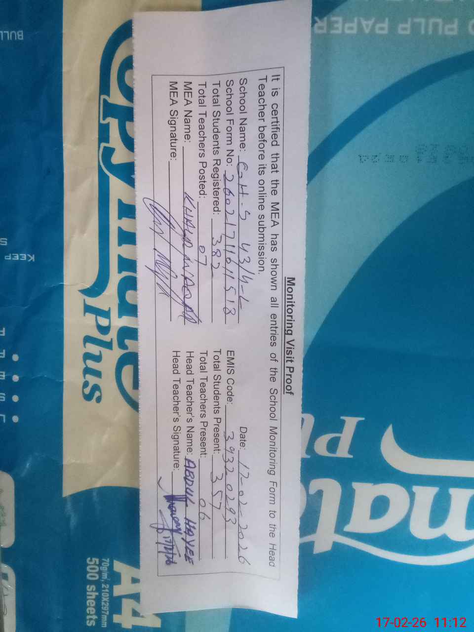 | EMIS Code: 39320293 | Name of School: GHS CHAK 43/4-L | |||