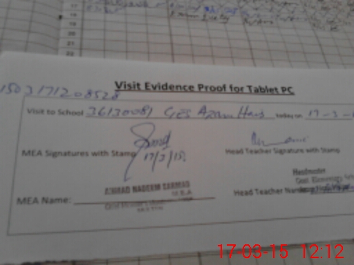| Attendance Register | Head Teacher | MEA with School | Visit Proof |