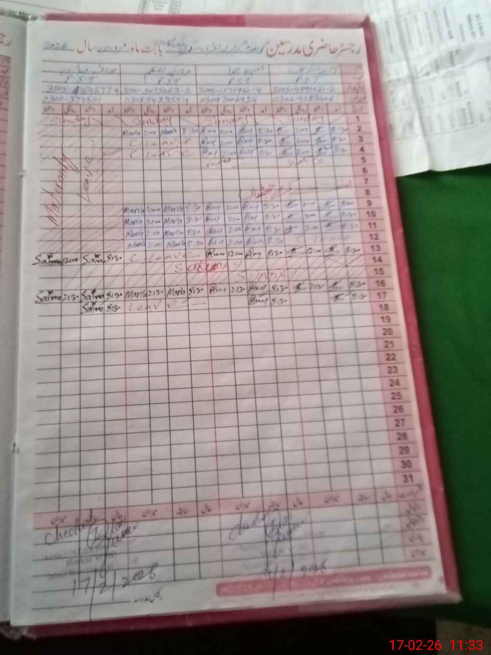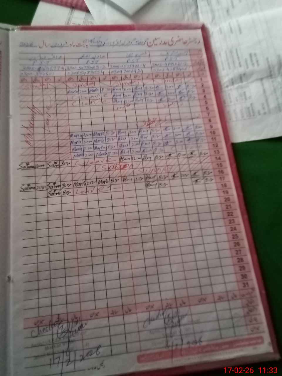 | CNIC | Full Name | Designation | R/C | Absence During Last Calender Month |