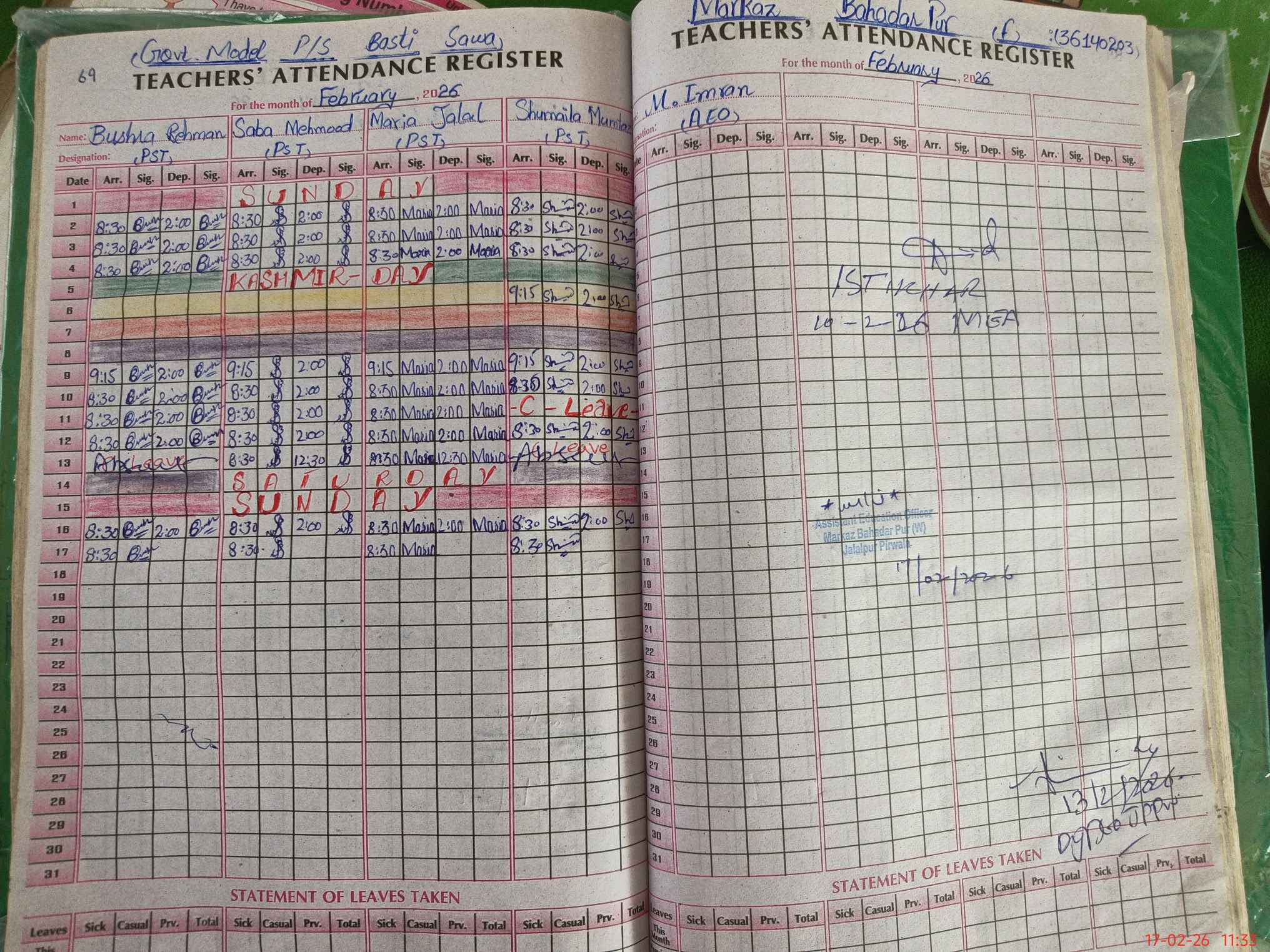| Attendance Register | Head Teacher | MEA with School | Visit Proof |