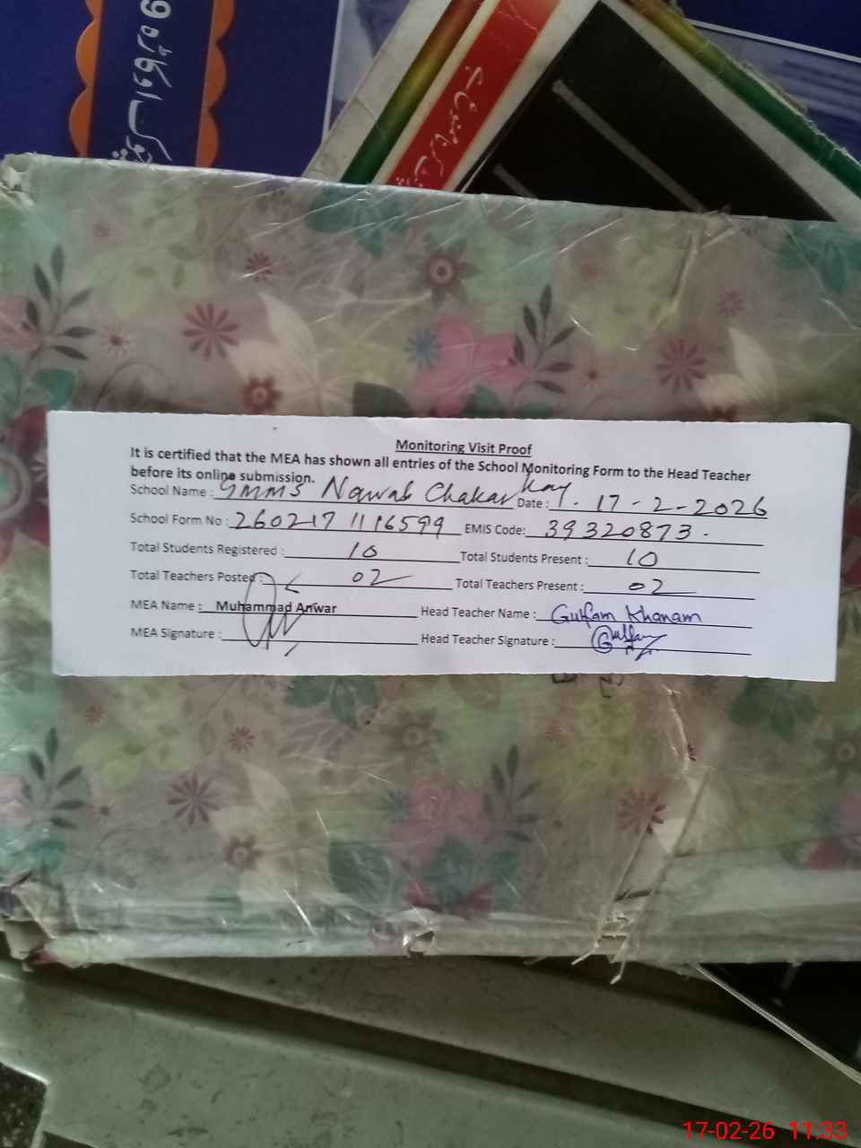 | EMIS Code: 39320873 | Name of School: GMMS NAWAB CHAKAR KE | |||