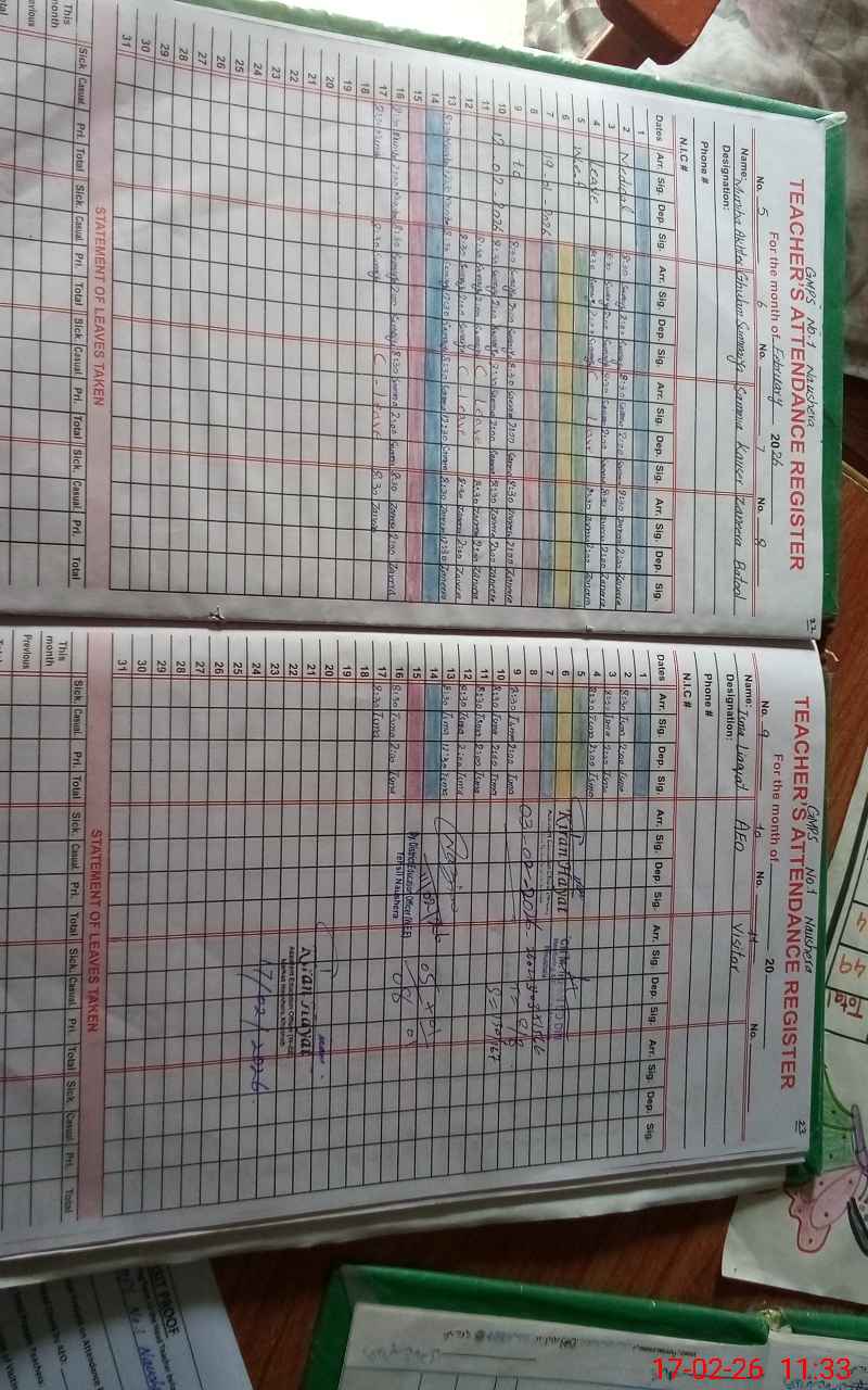 | Attendance Register | Head Teacher | MEA with School | Visit Proof |