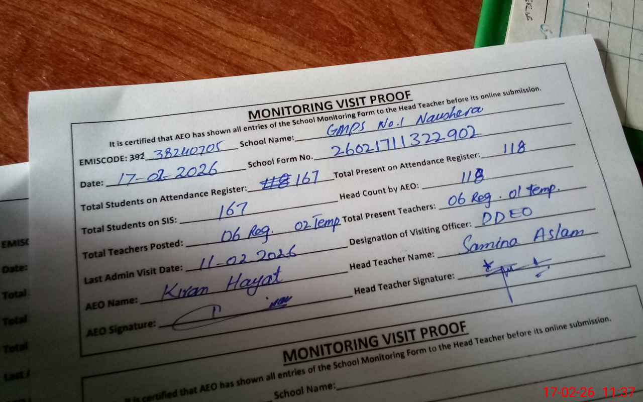 | EMIS Code: 38240705 | Name of School: GMPS NO. 1 NAUSHERA | |||