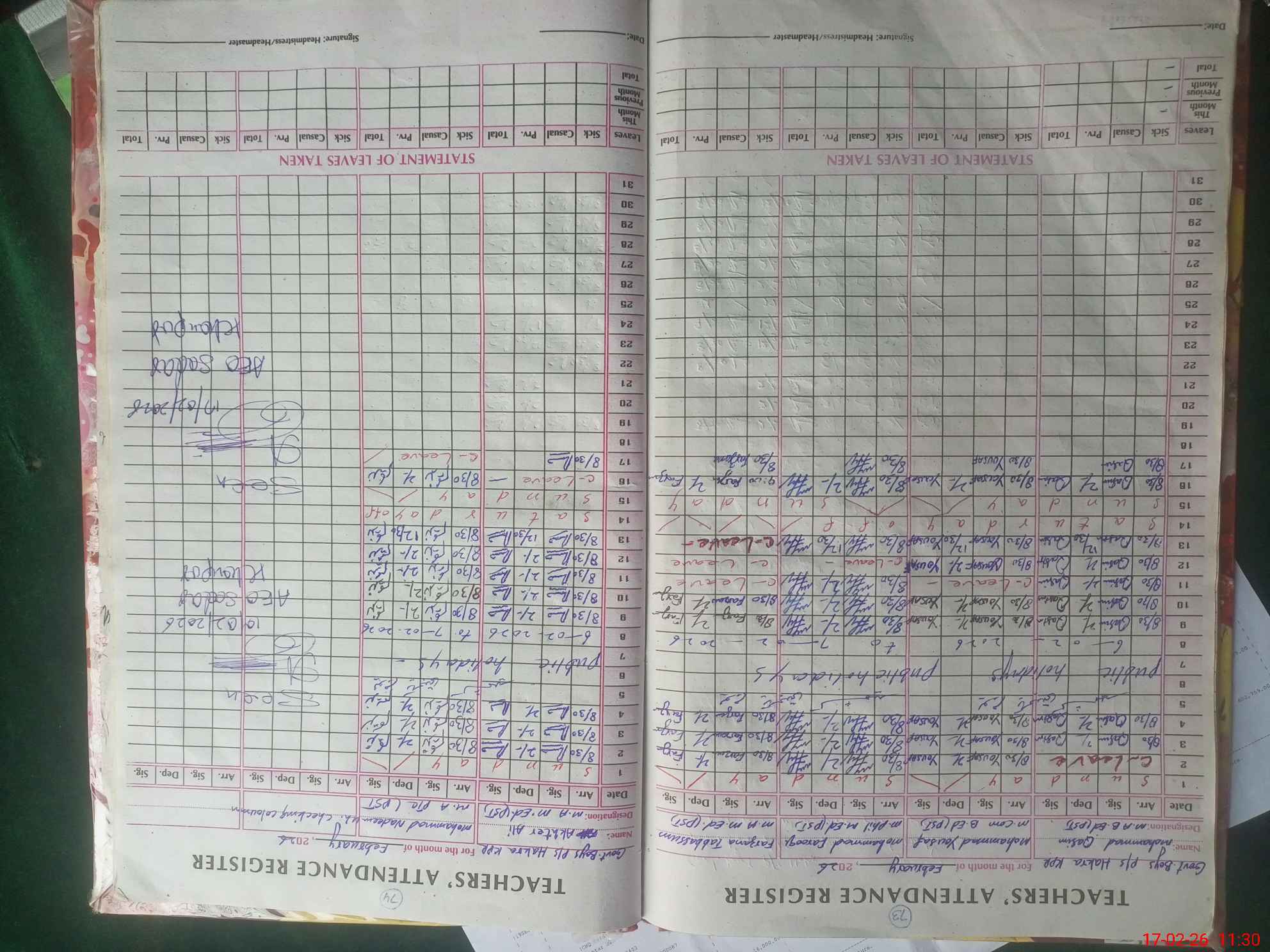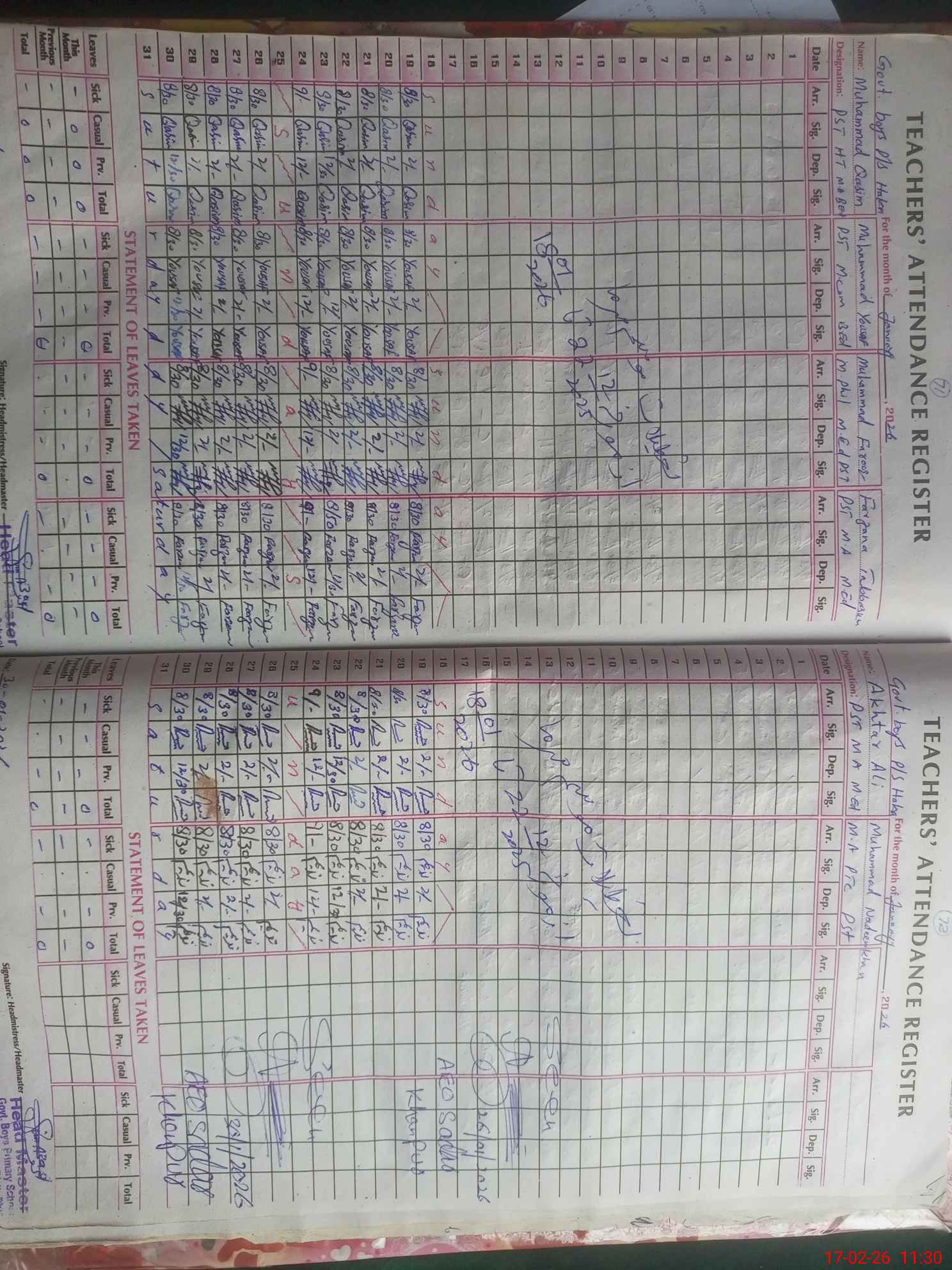 | 31**** | Mo**** Na**** Kh**** | PST Arts | Regular | 0 | 0 | 0 | 0 | 0 | 0 | 0 | 0 | 0 | Casual |