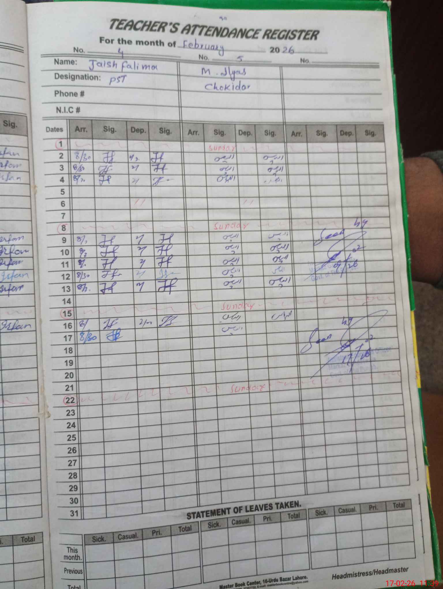 | Name: UM**** HA**** Designation: (School Headmaster's/Headmistress's) PST Phone/Cell Number: 03**** |