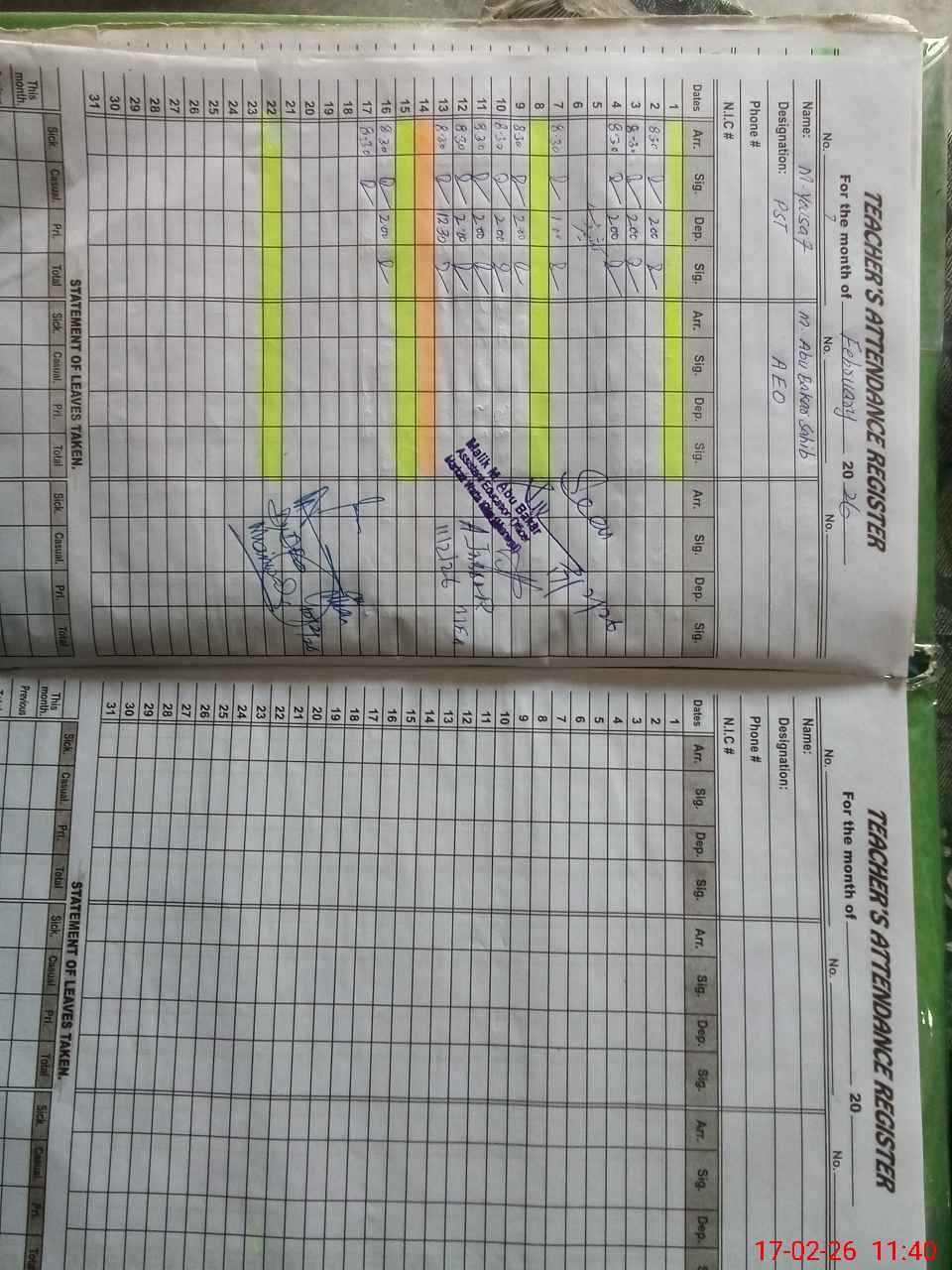 | Name: Mu**** Bi**** Kh**** Designation: (School Headmaster's/Headmistress's) PST Phone/Cell Number: 03**** |