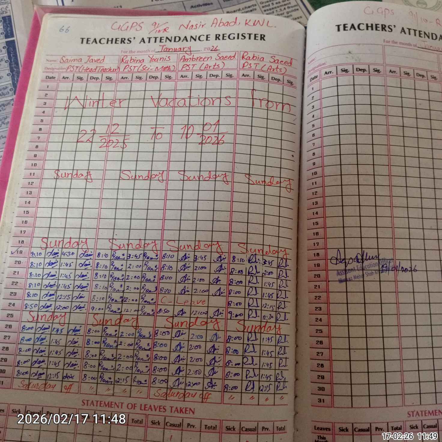 | Leave | Duty | Absent | Maternity | Medical | Ex- Pak |