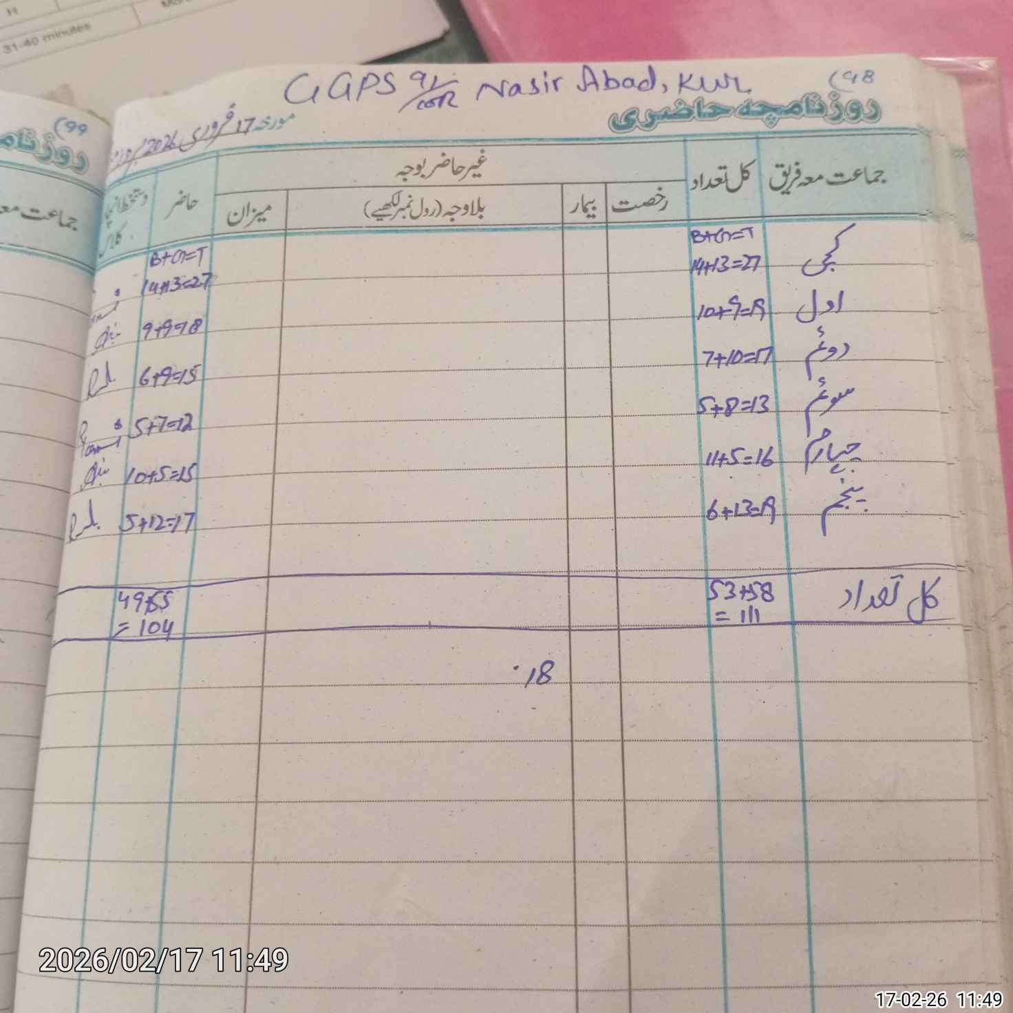 | Total Students Present | 0 | 0 | 18 | 15 | 12 | 15 | 17 | 104 | ||||||||