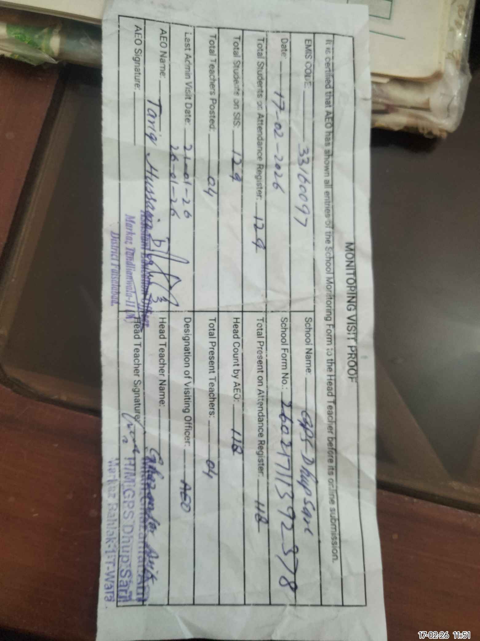 | EMIS Code: 33160097 | Name of School: GPS DHUPSARI | |||