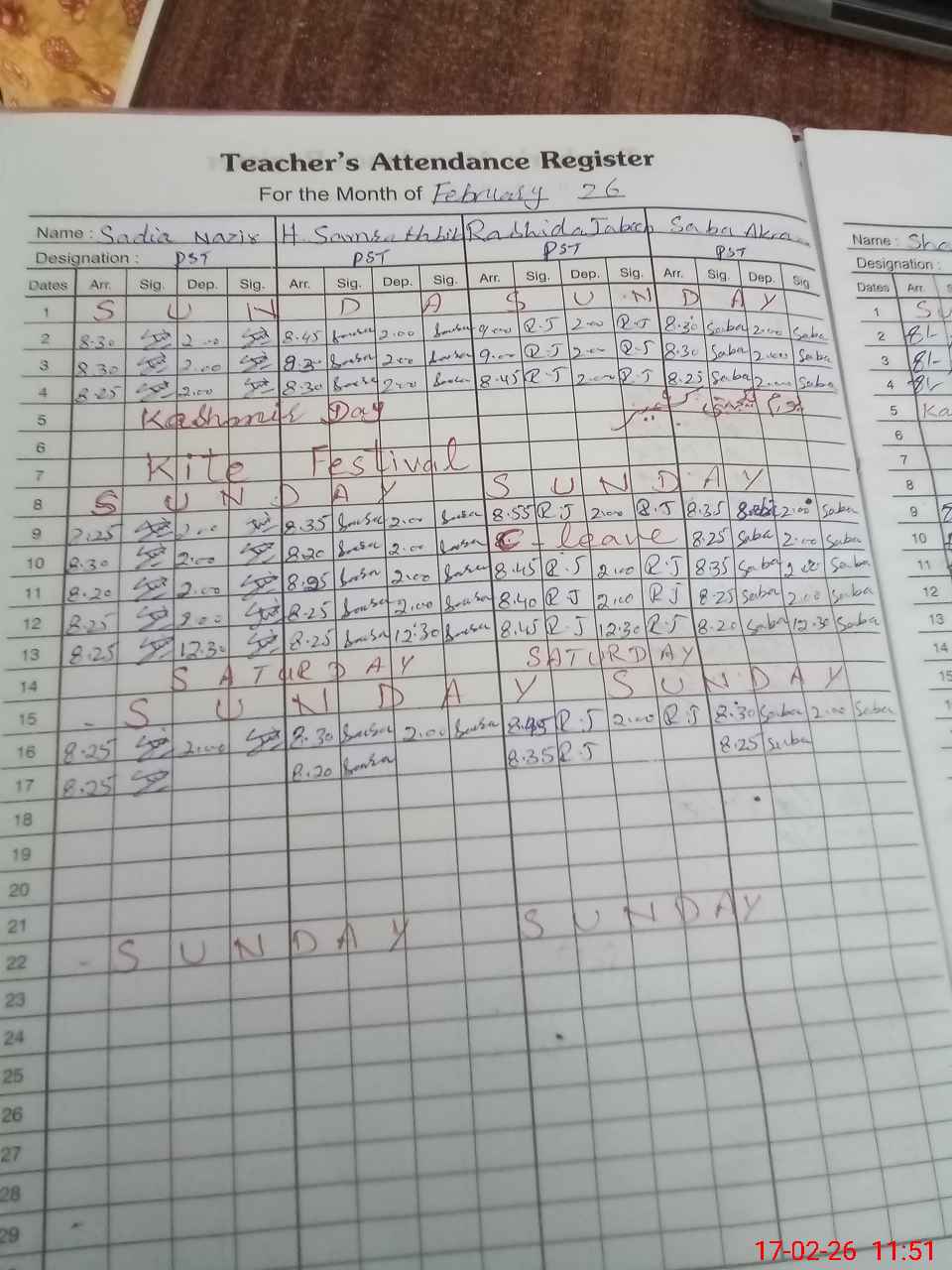 | CNIC | Full Name | Designation | R/C | Absence During Last Calender Month |