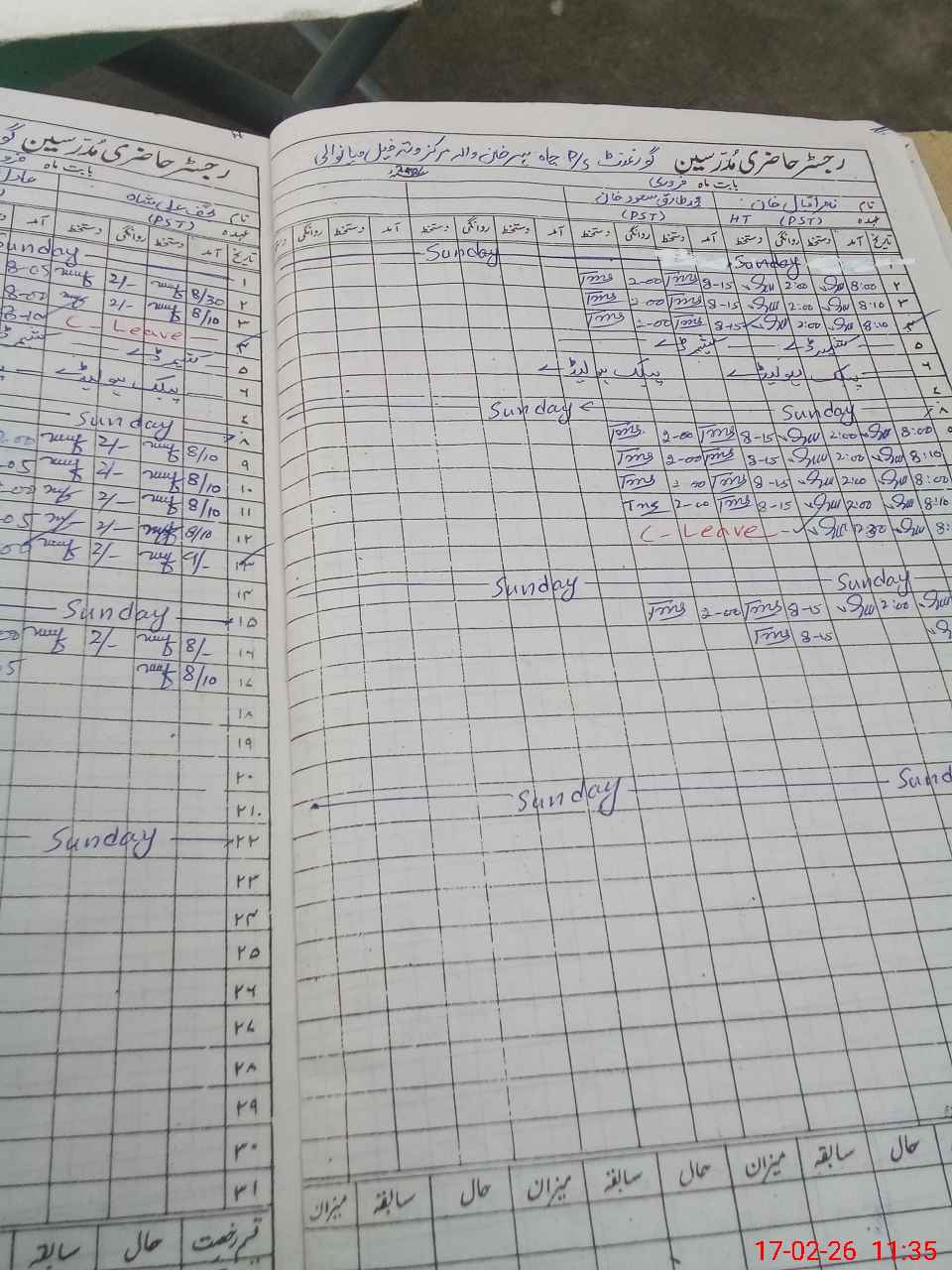 | CNIC | Full Name | Designation | R/C | Absence During Last Calender Month |