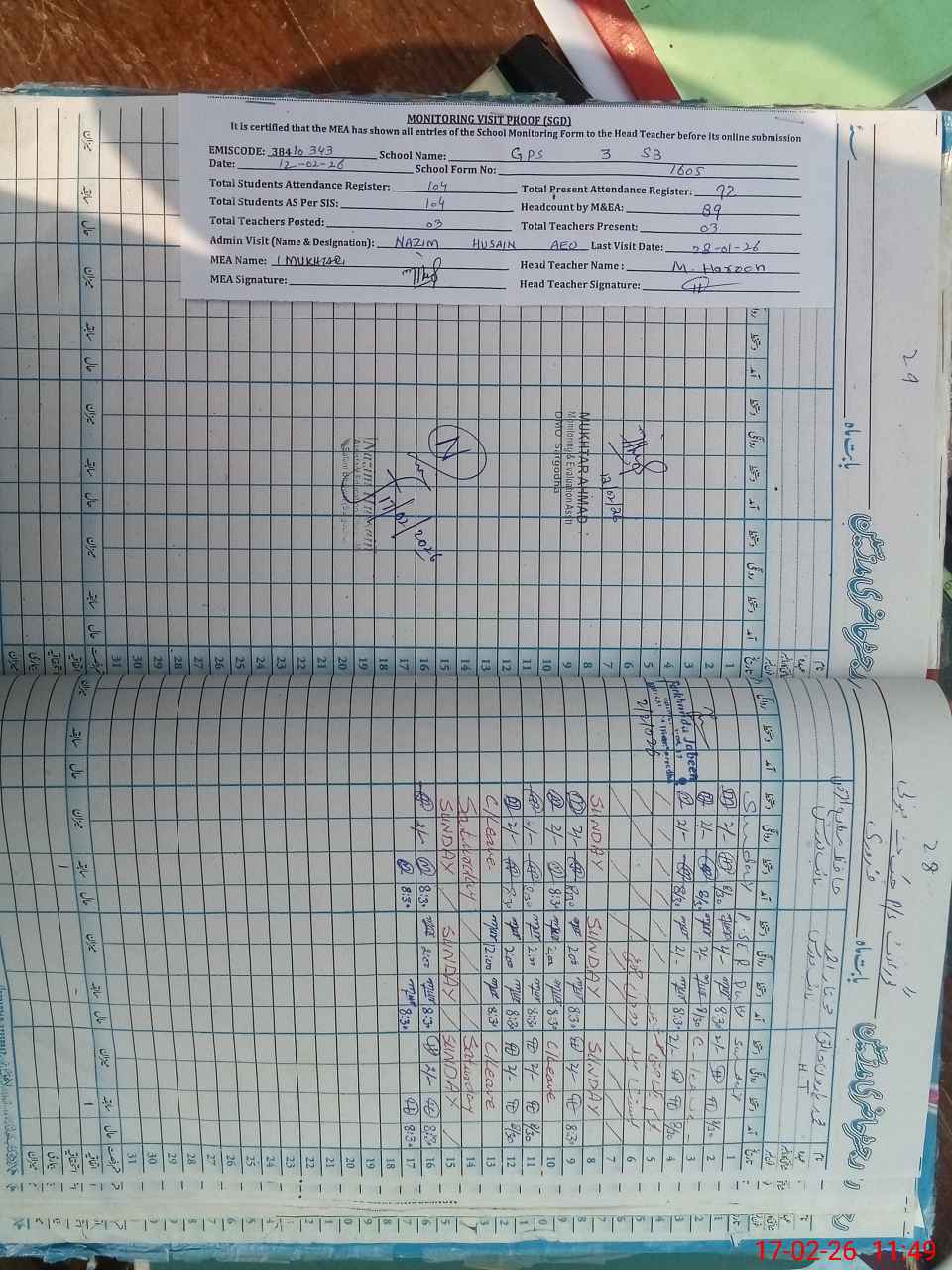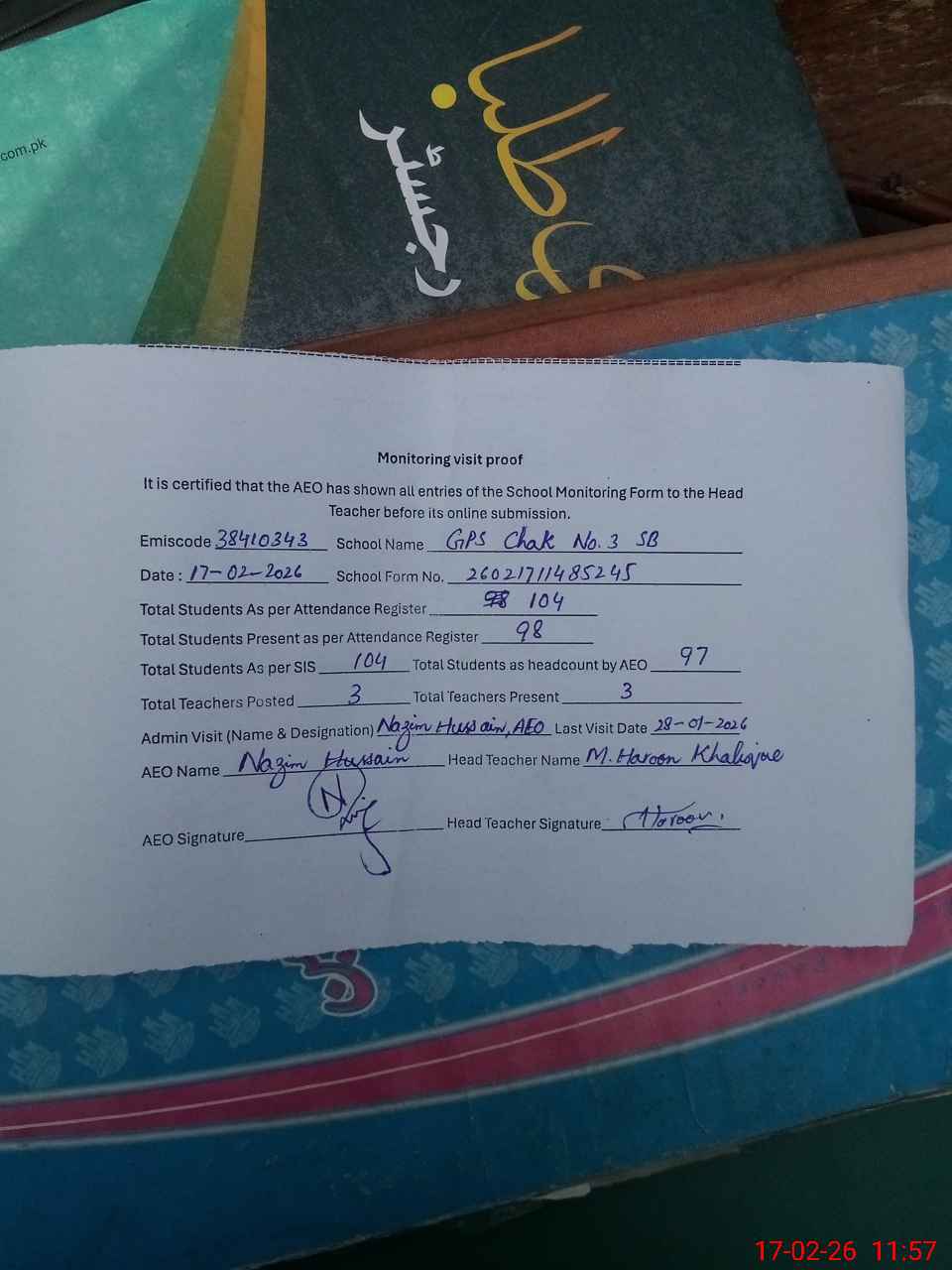 | EMIS Code: 38410343 | Name of School: GPS CHAK NO.3 SB | |||