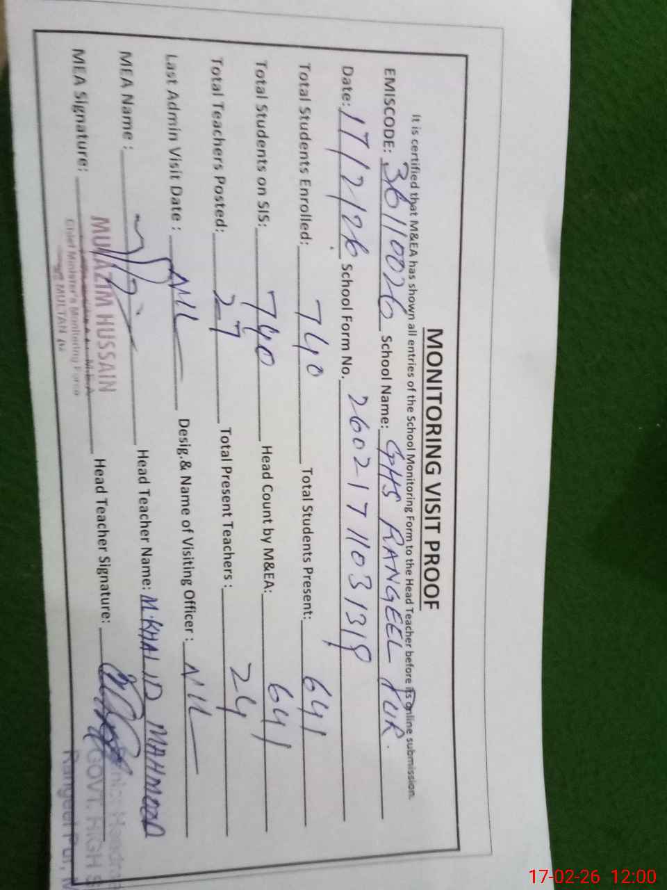 | EMIS Code: 36110026 | Name of School: GHS RANGEEL PUR SURAJ KUND ROAD MULTAN | |||