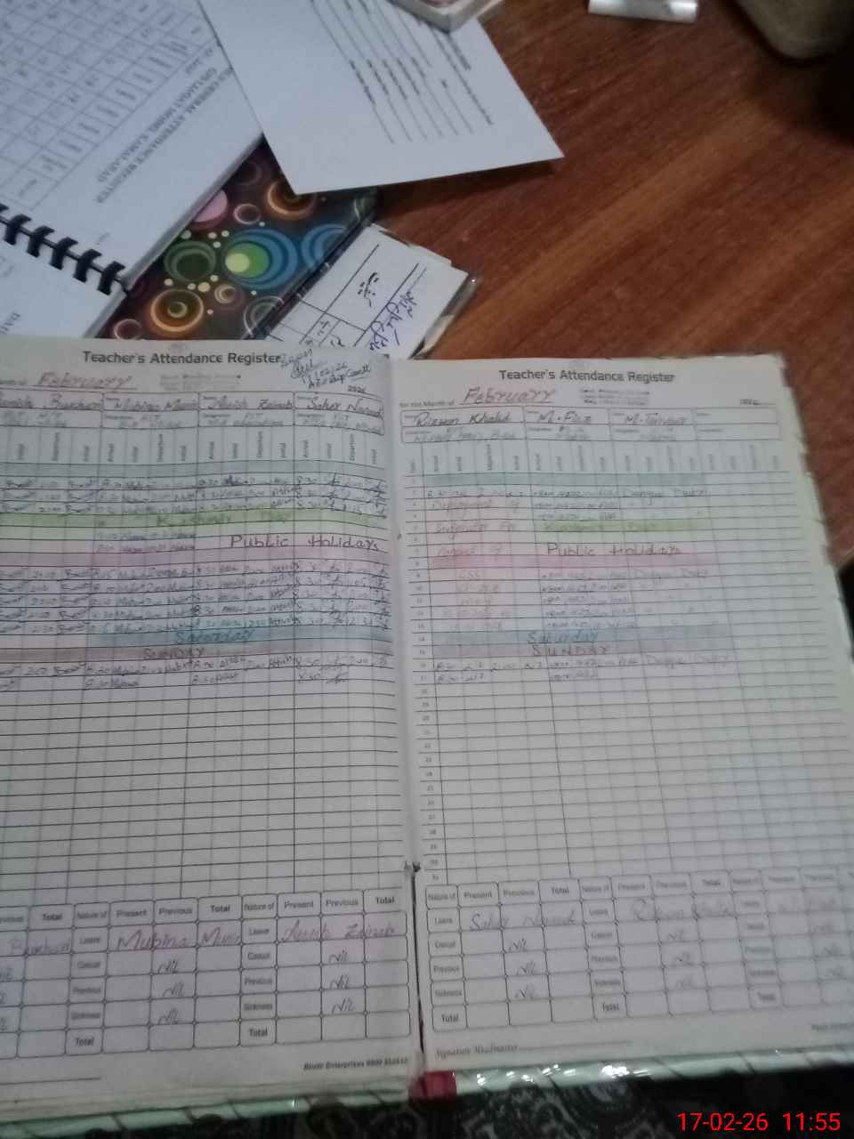 | CNIC | Full Name | Designation | R/C | Absence During Last Calender Month |
