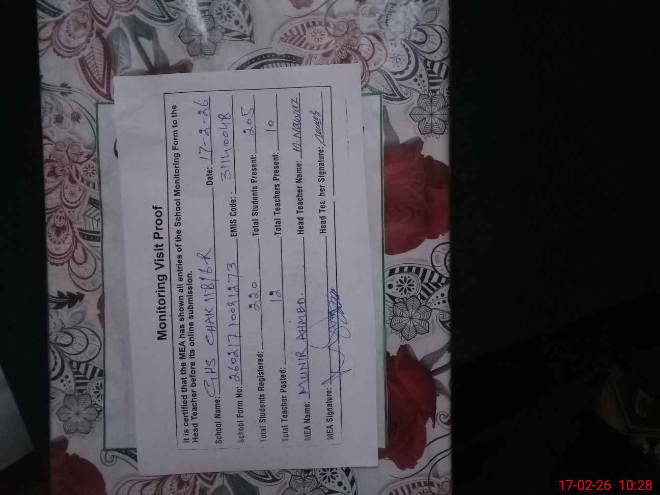 | Certified that this School was Inspected by the Undersigned MEA/DMO Today and the Information Stated Above is as Per Record. | |||||