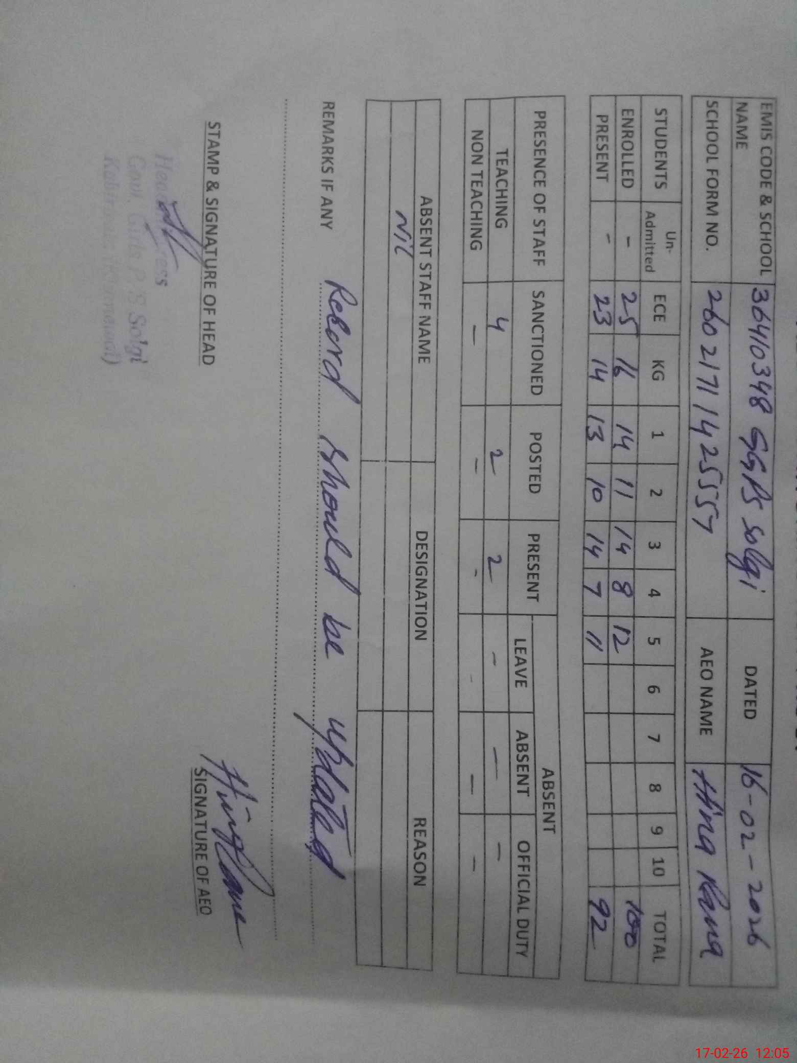 | Attendance Register | Head Teacher | MEA with School | Visit Proof |