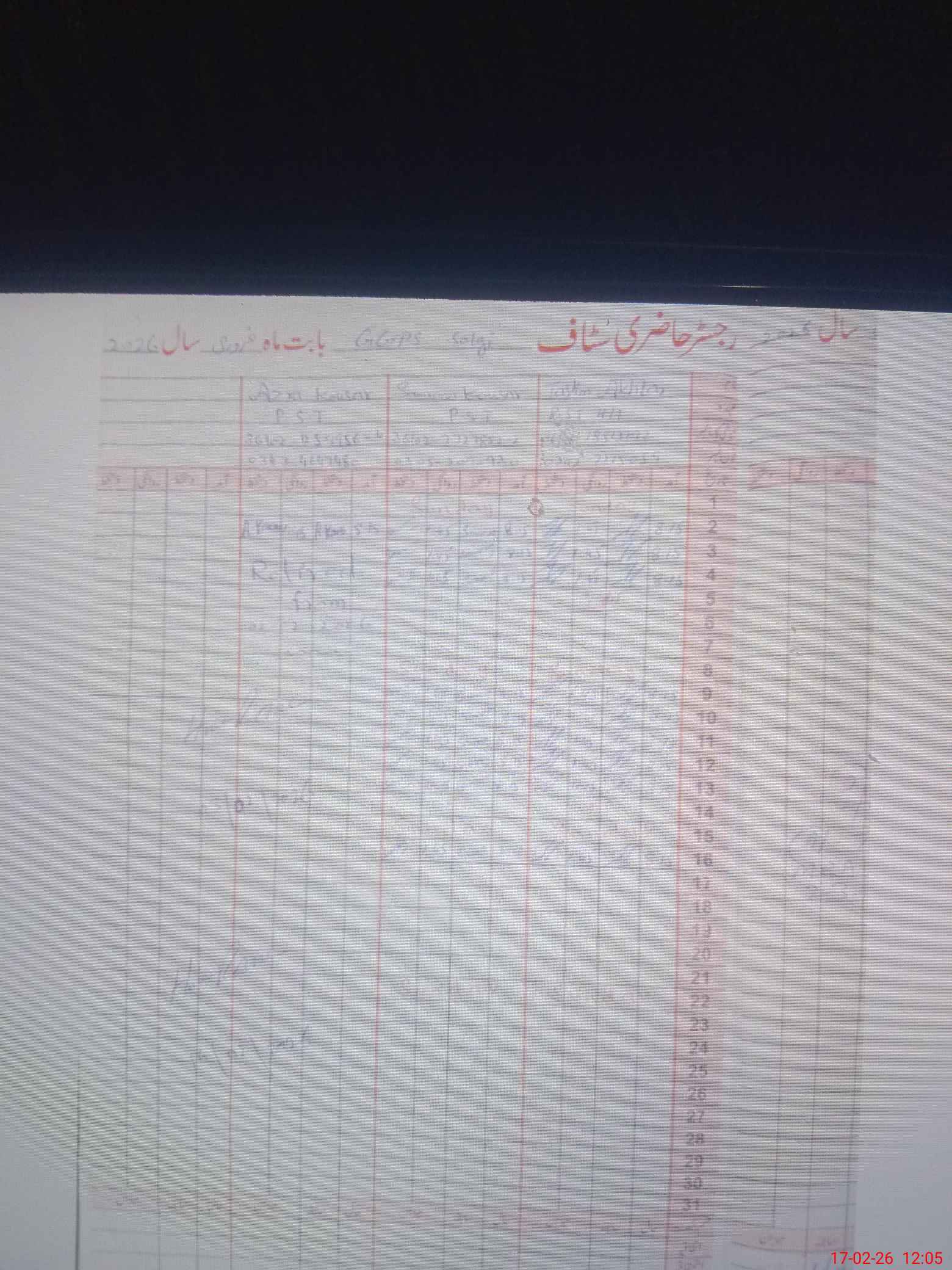 | CNIC | Full Name | Designation | R/C | Absence During Last Calender Month |