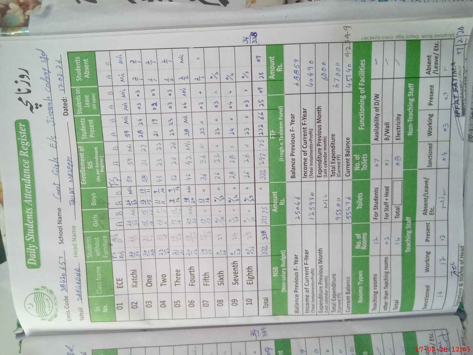 | EMIS Code: 38420657 | Name of School: GGES JINNAH COLONY | |||